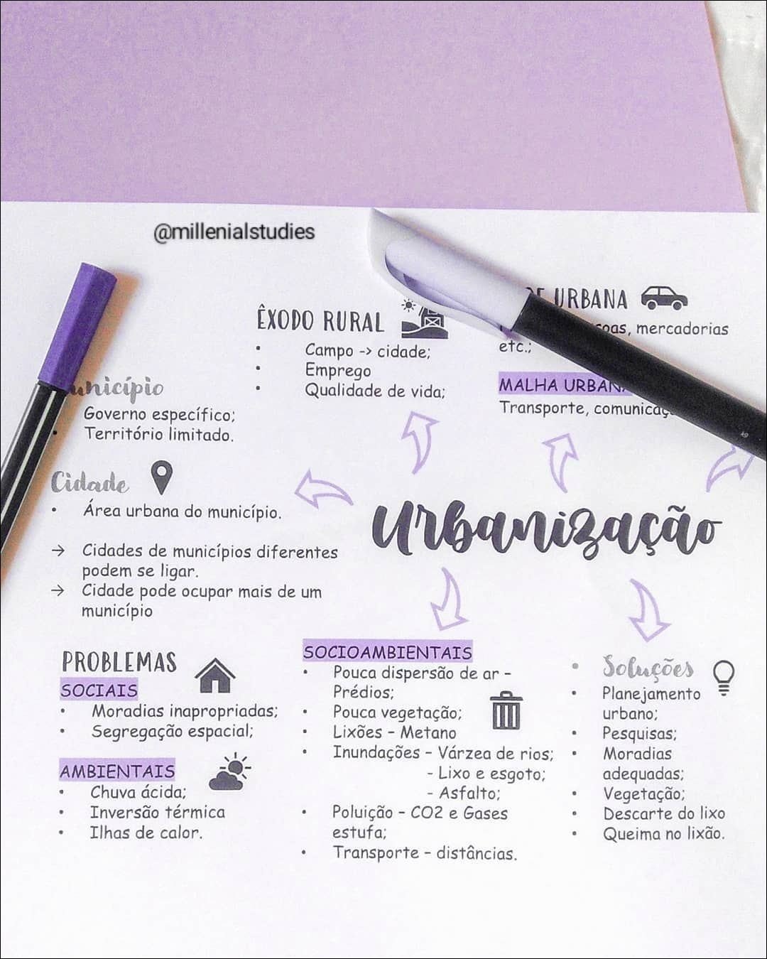 Compilação com os melhores mapas mentais, conceituais, infográficos, diagramas e resumos sobre geografia urbana.