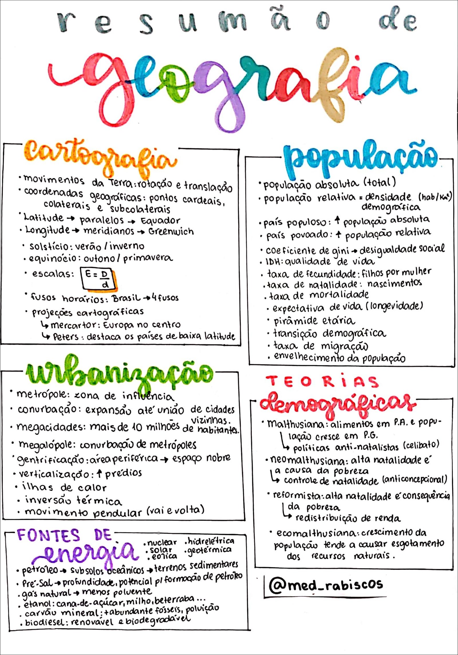 Compilação com os melhores mapas mentais, conceituais, infográficos, diagramas e resumos sobre geografia.