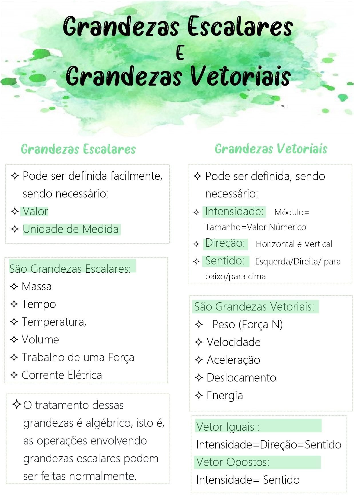 Compilação com os melhores mapas mentais, conceituais, infográficos, diagramas e resumos sobre grandezas escalares e vetoriais.