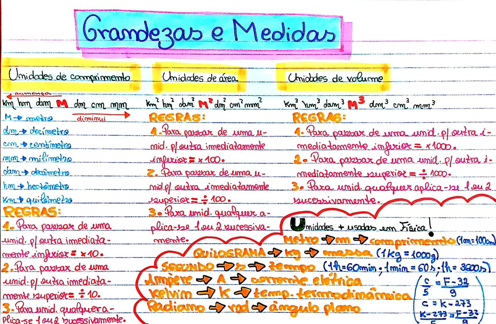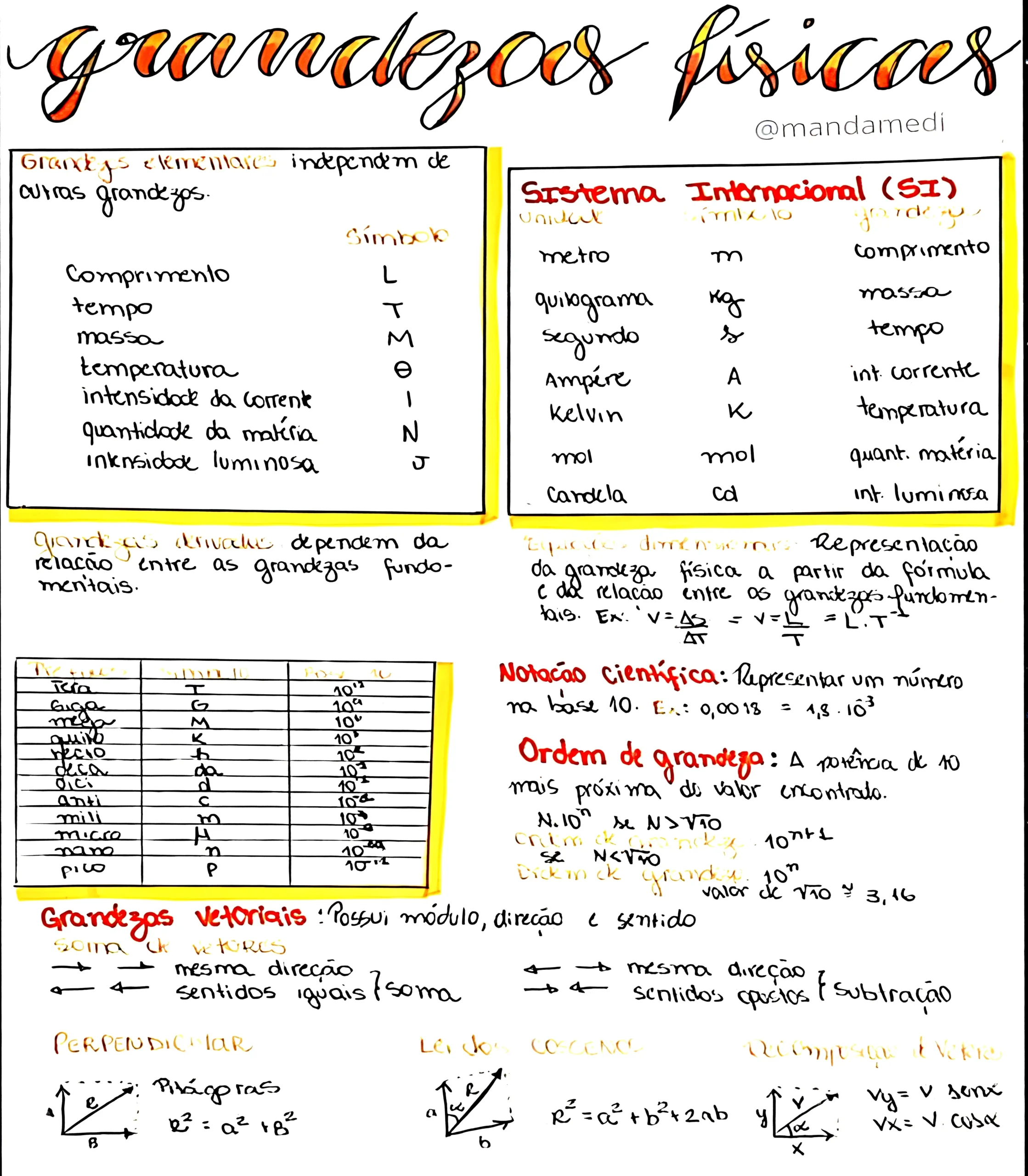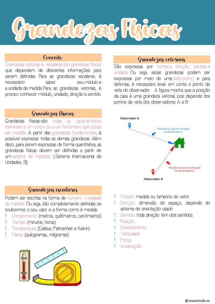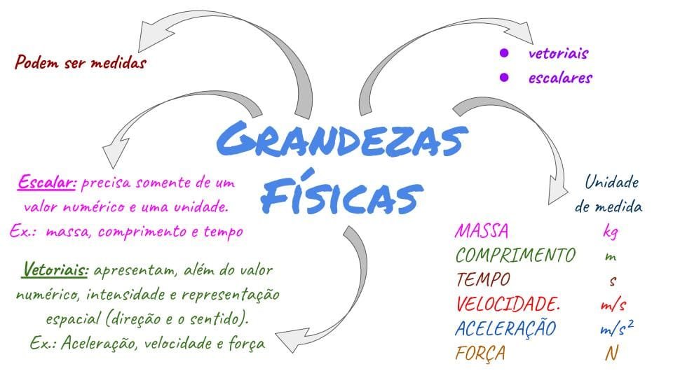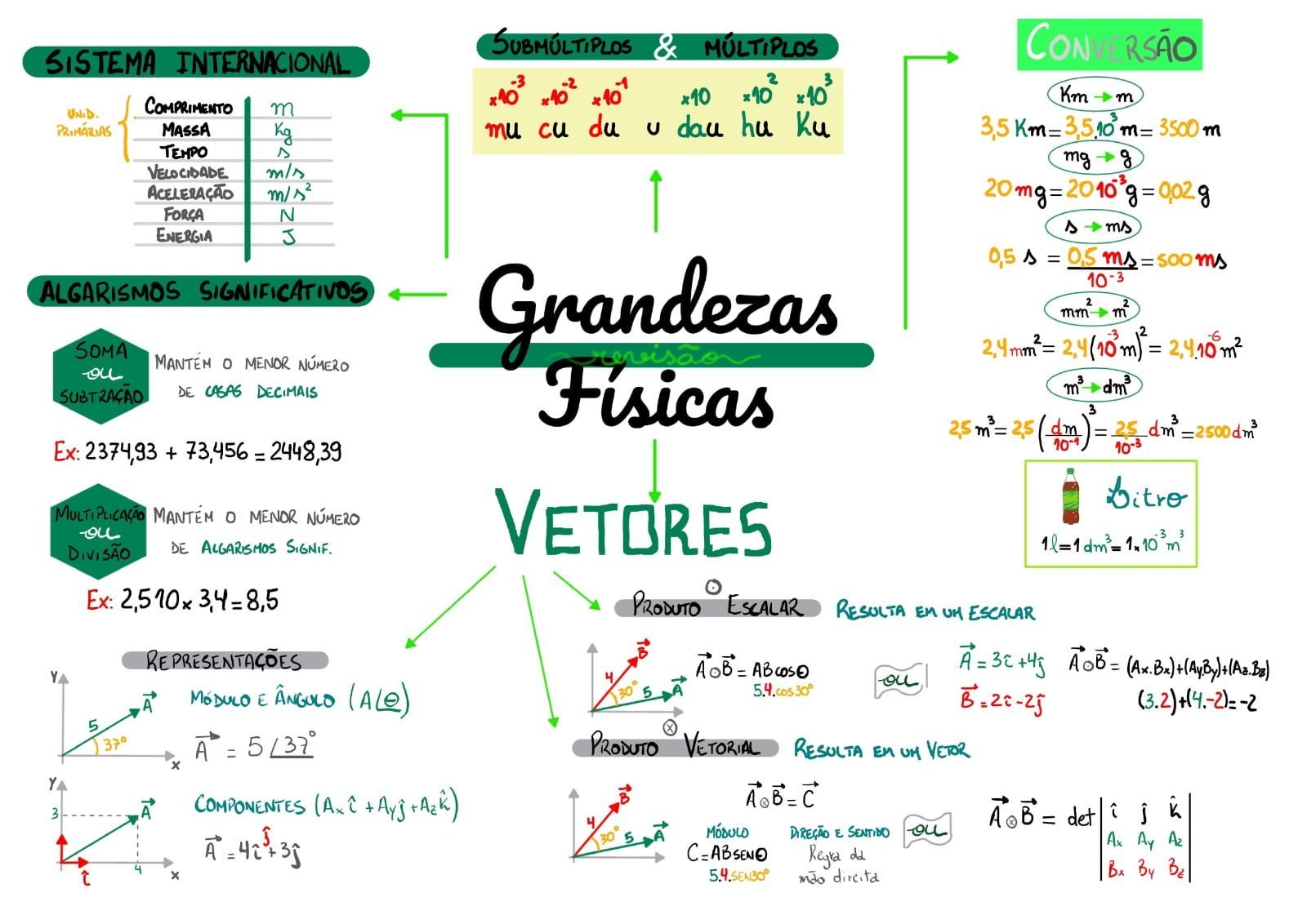 Compilação com os melhores mapas mentais, conceituais, infográficos, diagramas e resumos sobre grandezas físicas.