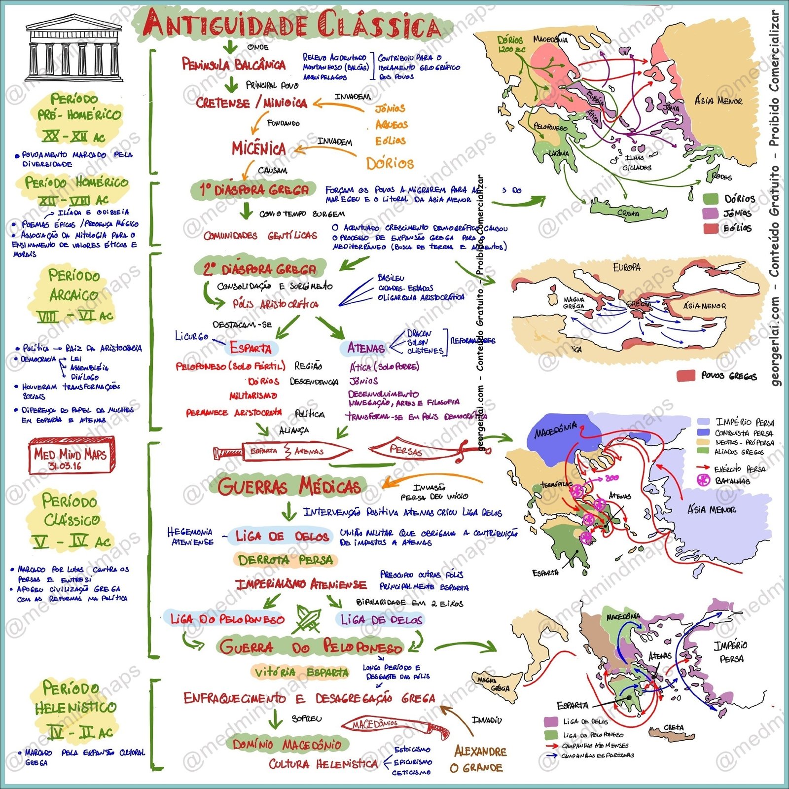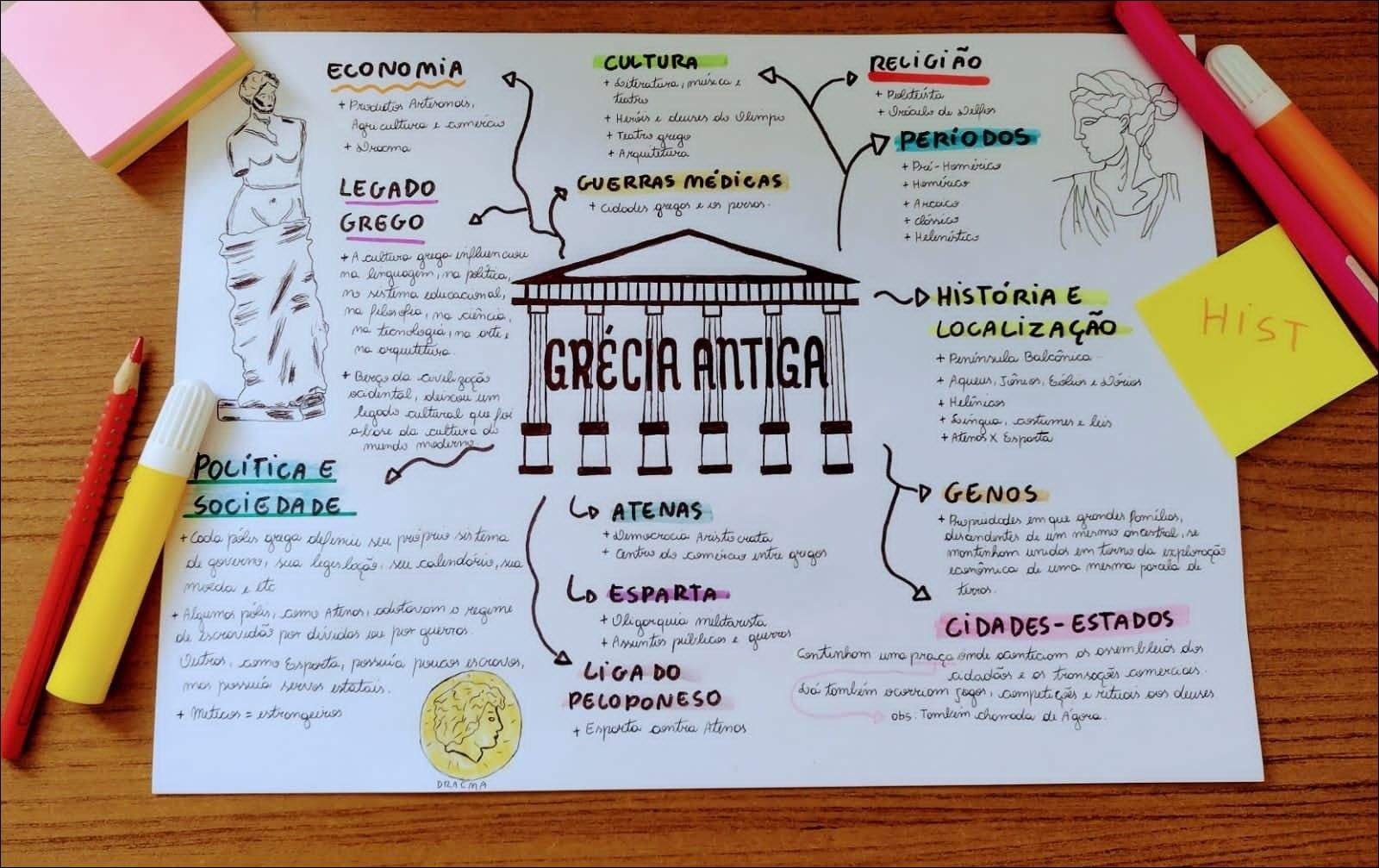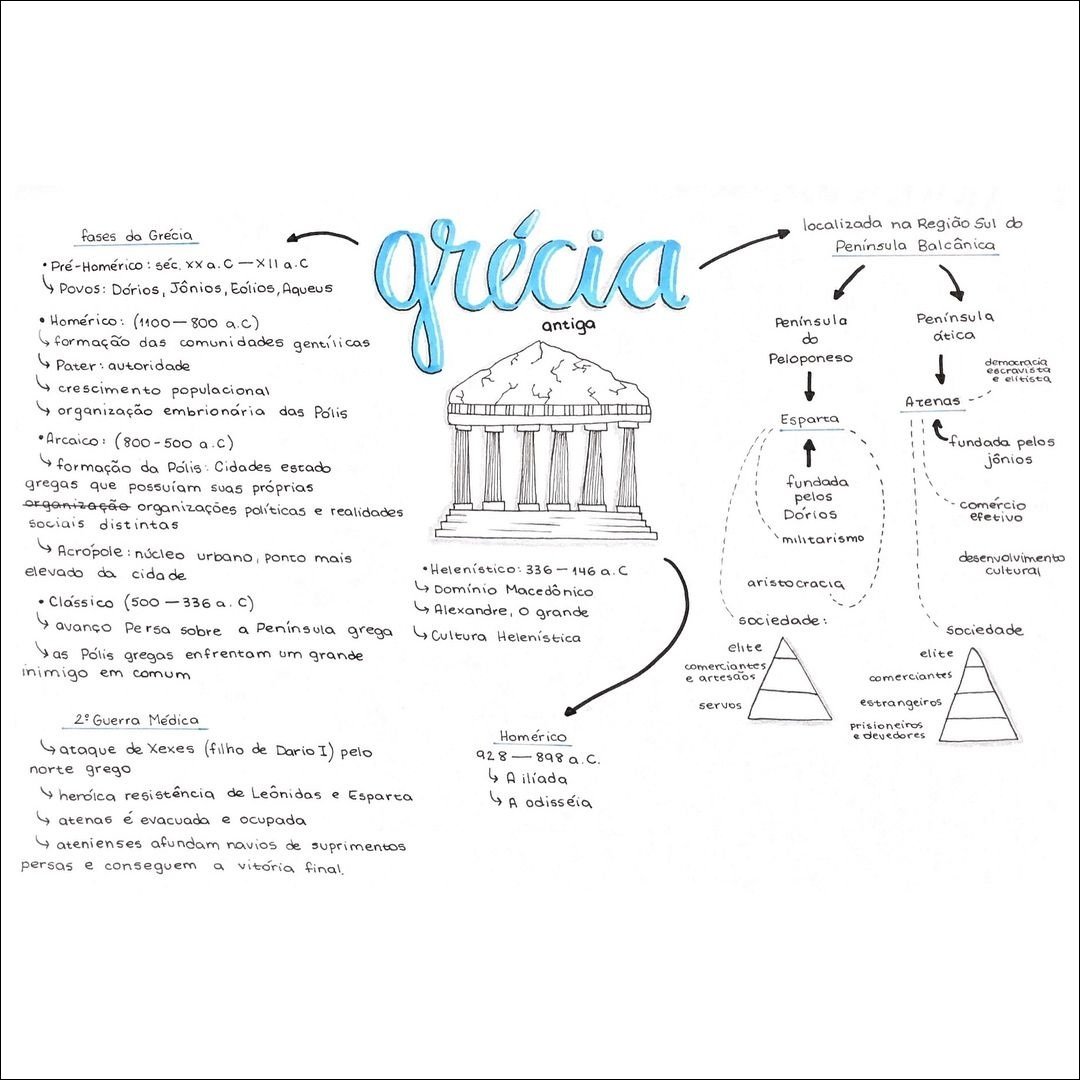 Compilação com os melhores mapas mentais, conceituais, infográficos, diagramas e resumos sobre Grécia antiga.