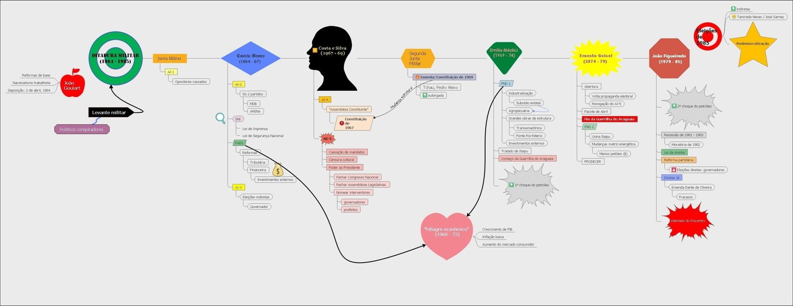Compilação com os melhores mapas mentais, conceituais, infográficos, diagramas e resumos sobre guerrilha do Araguaia.