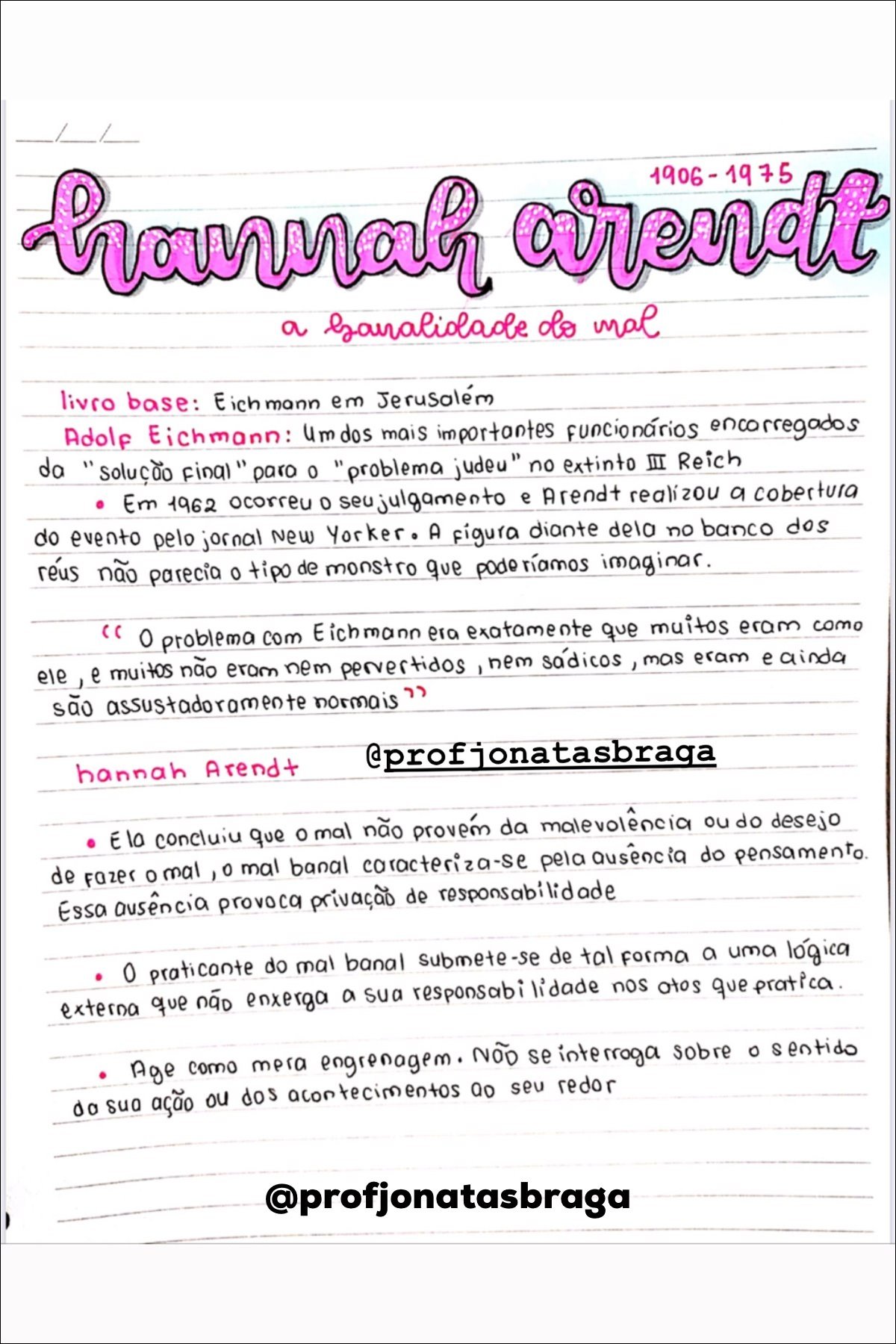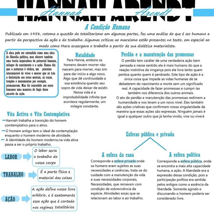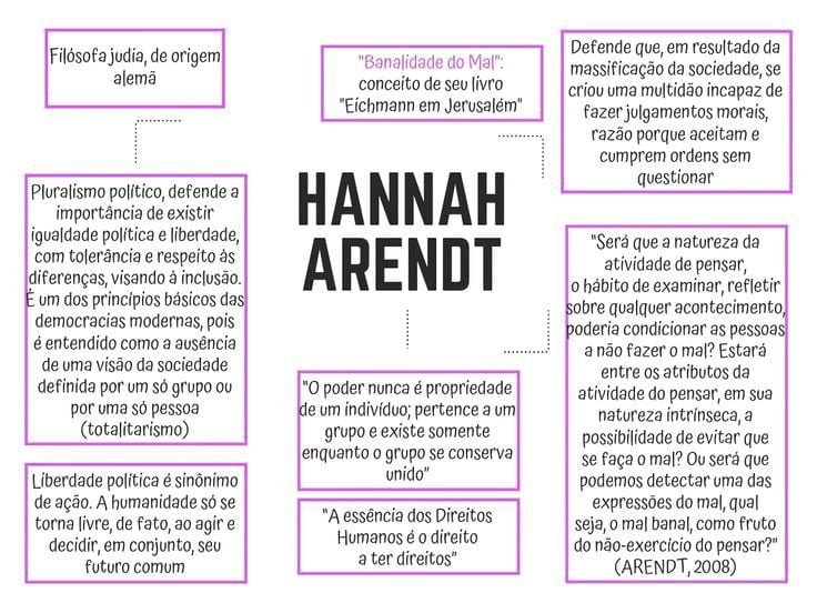 Compilação com os melhores mapas mentais, conceituais, infográficos, diagramas e resumos sobre Hannah Arendt.