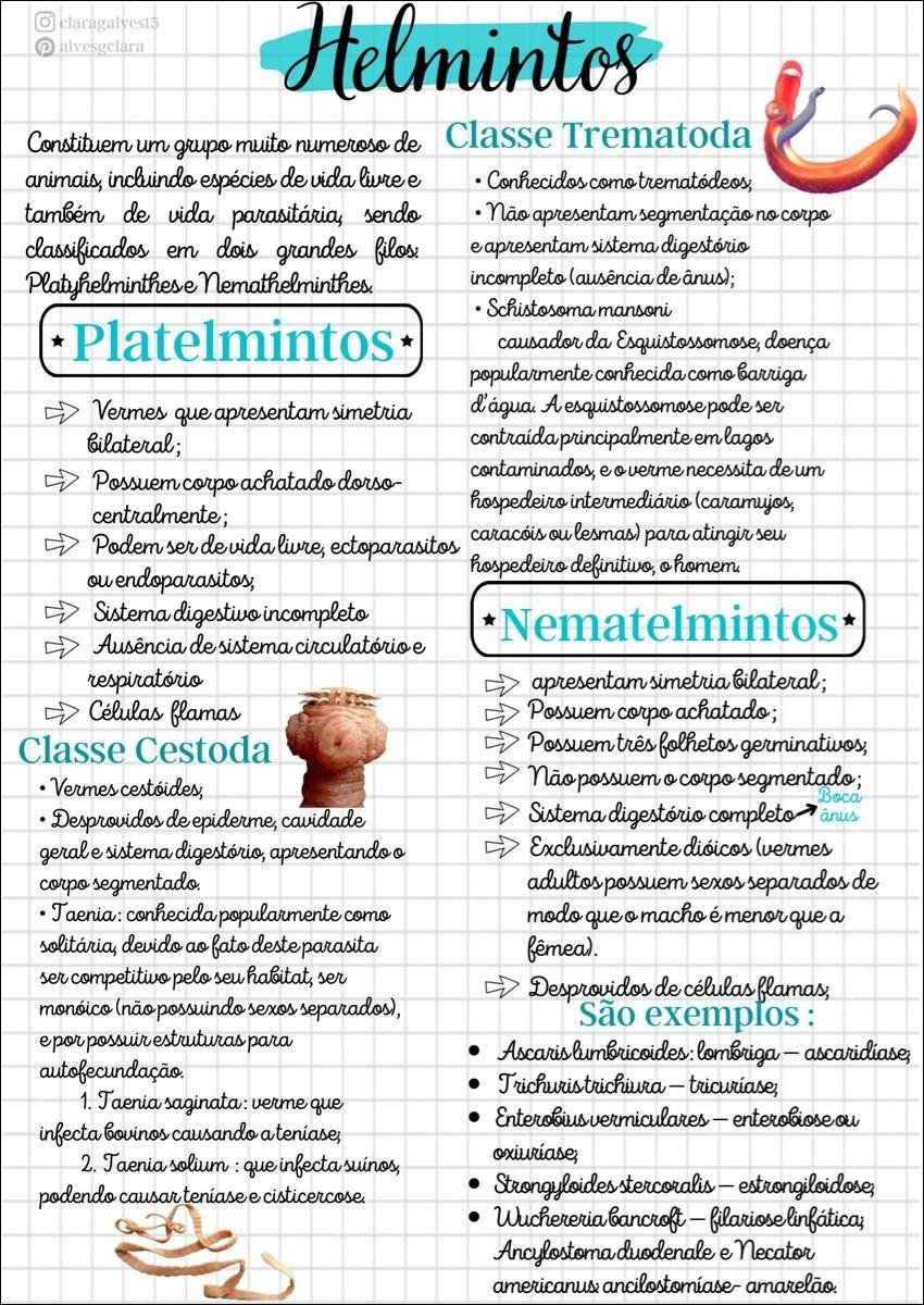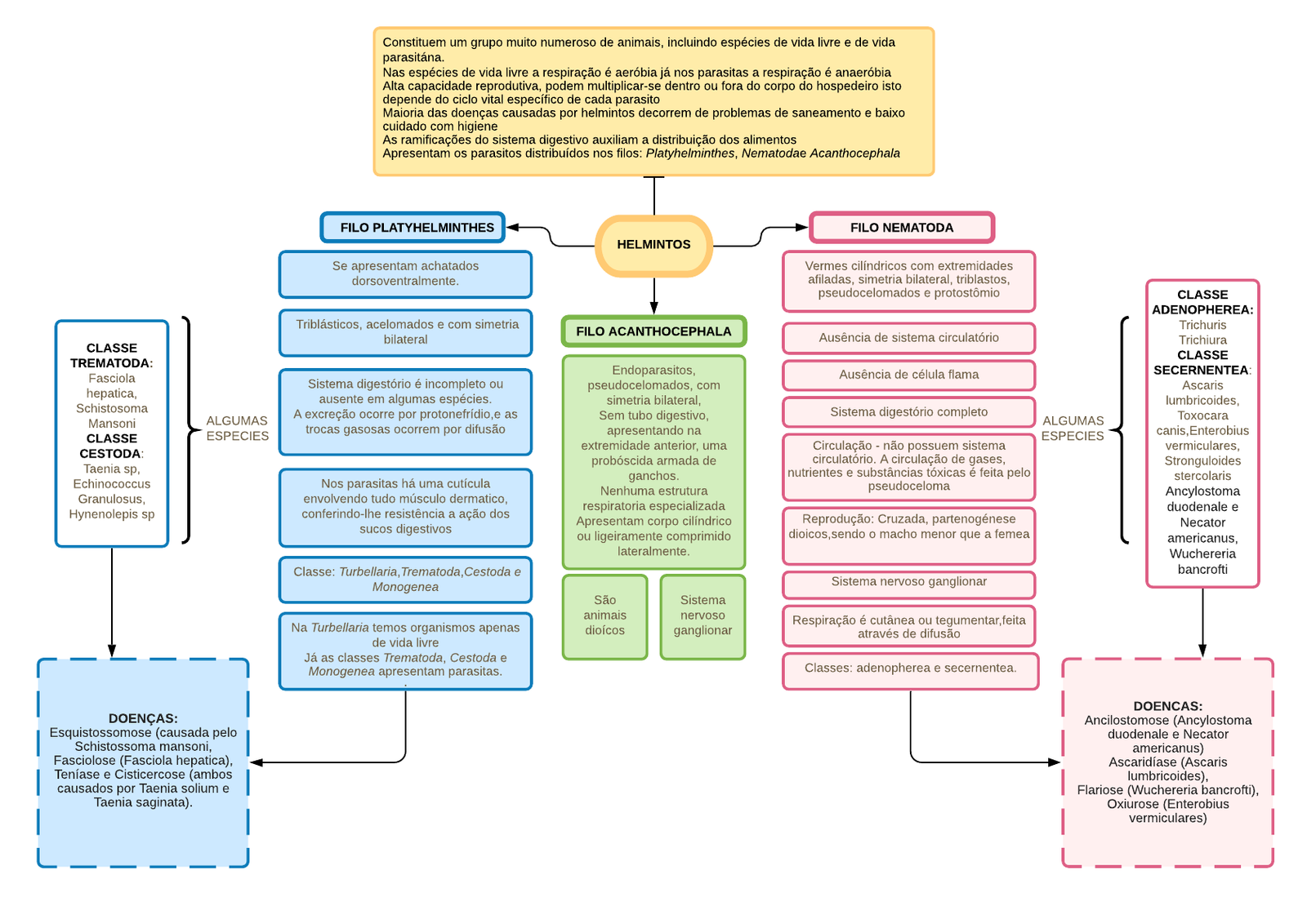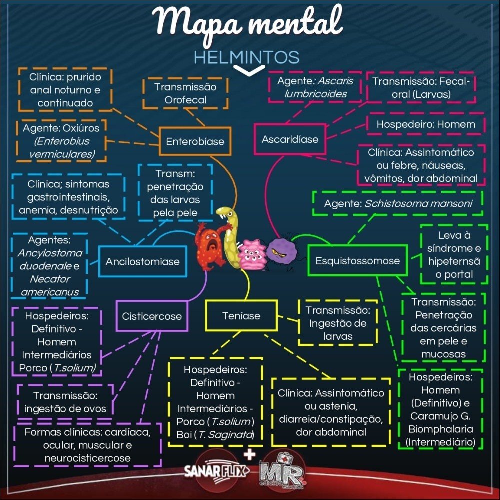 Compilação com os melhores mapas mentais, conceituais, infográficos, diagramas e resumos sobre helmintos.
