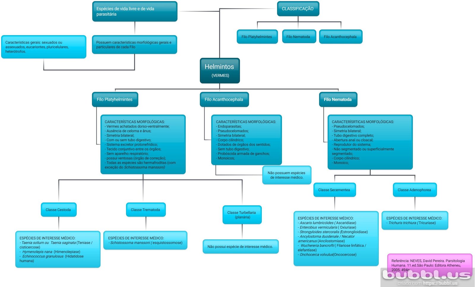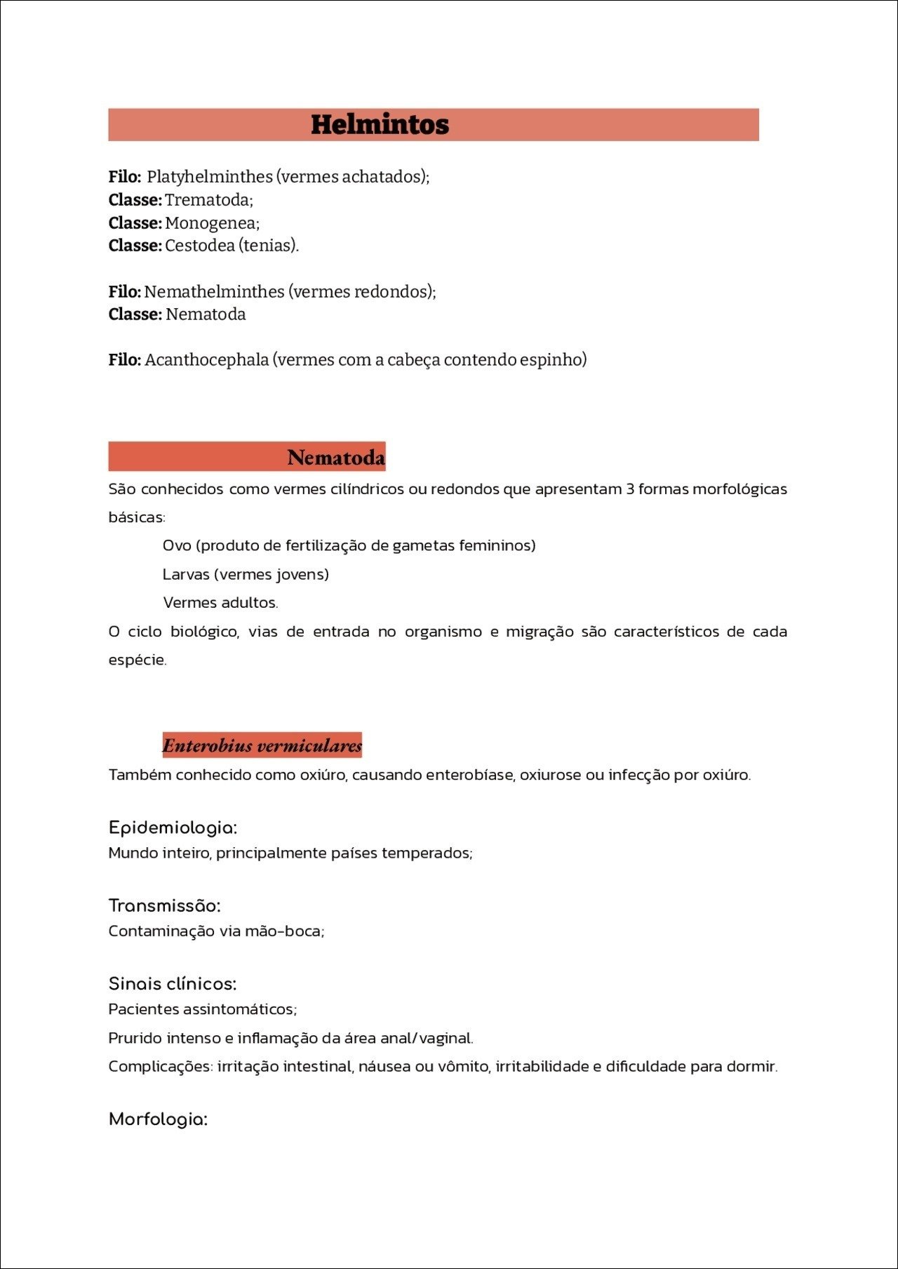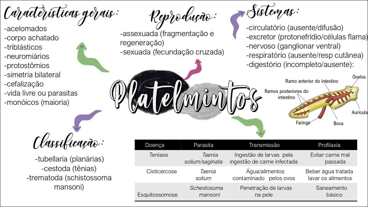Compilação com os melhores mapas mentais, conceituais, infográficos, diagramas e resumos sobre helmintos.