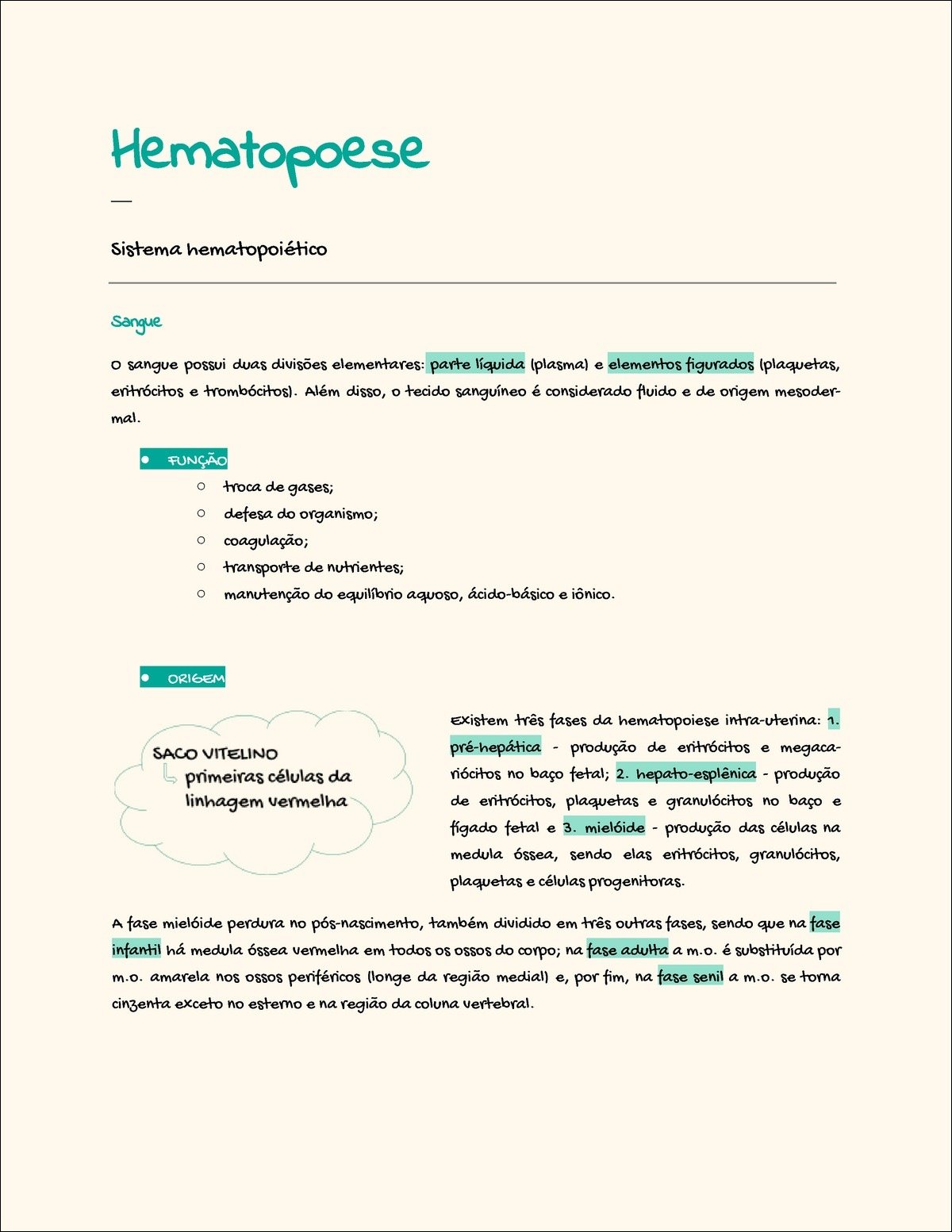 Resumo sobre hematopoiese