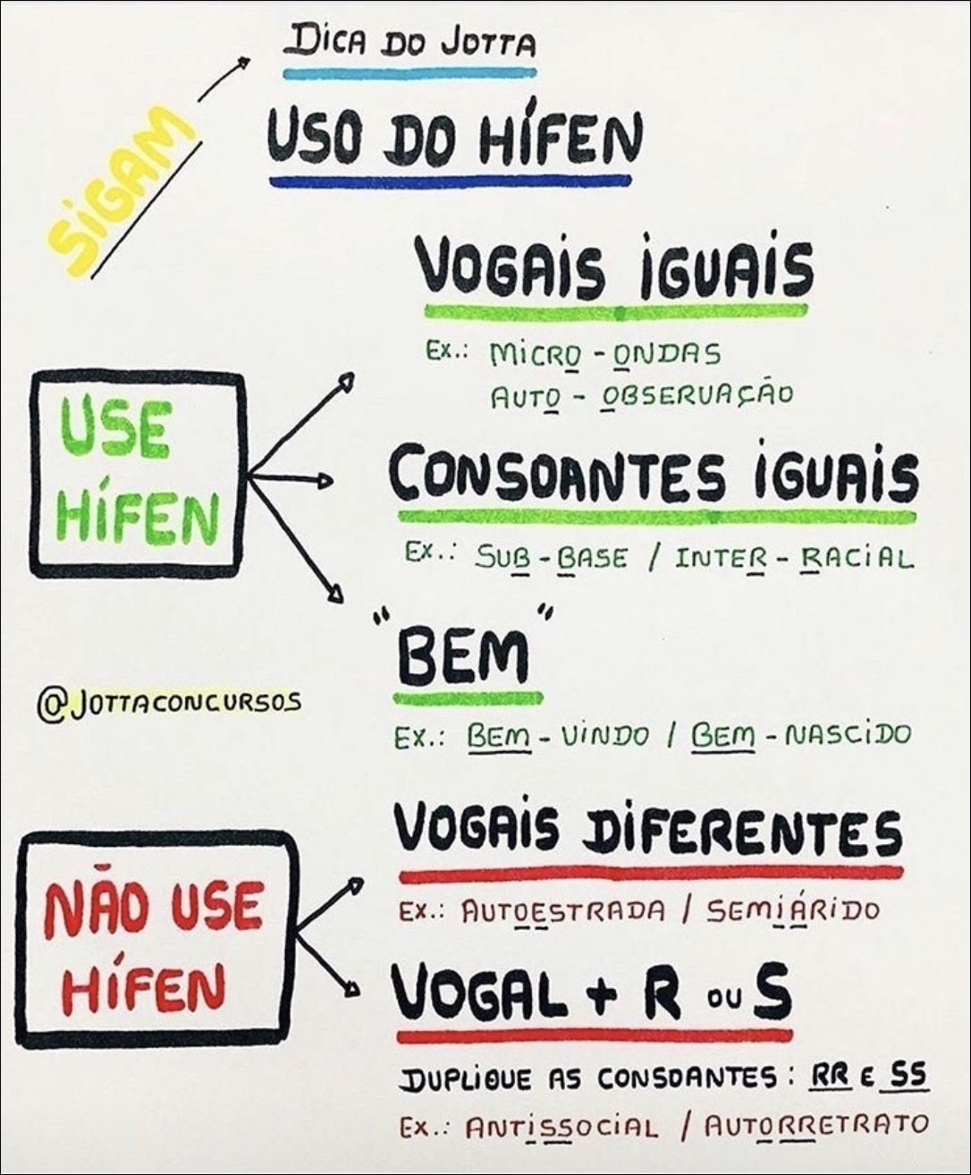 Compilação com os melhores mapas mentais, conceituais, infográficos, diagramas e resumos sobre hífen.