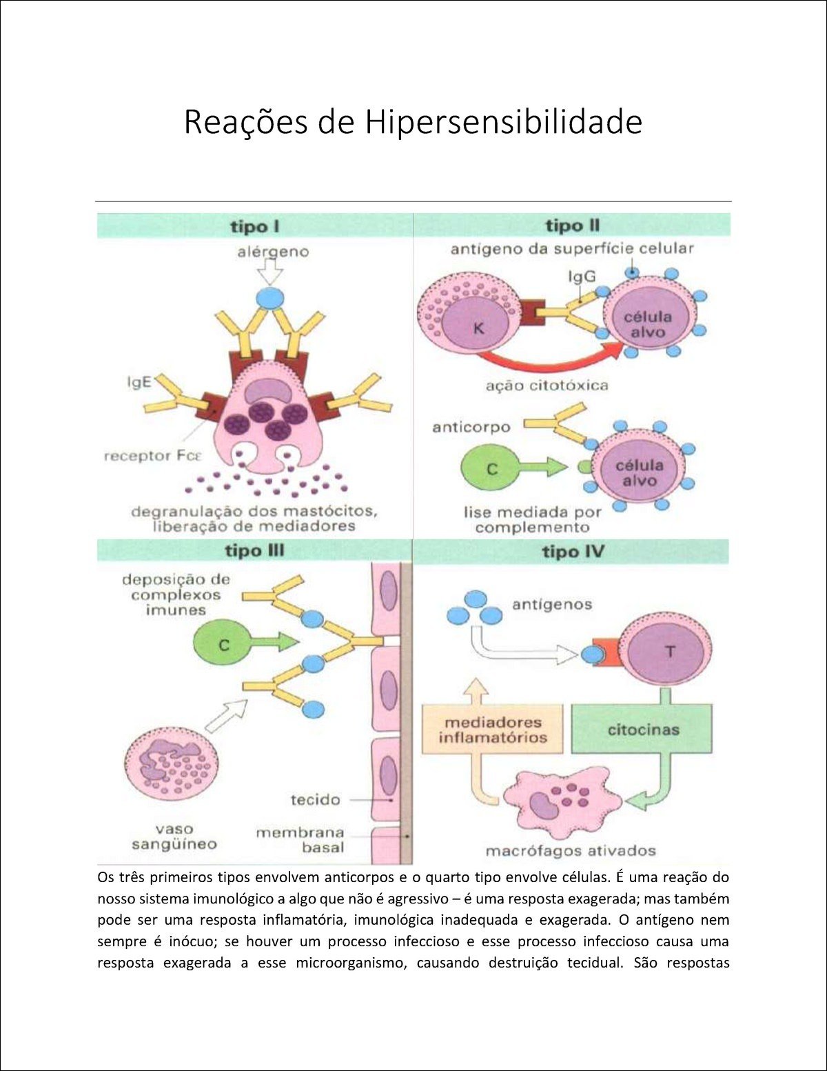 A hipersensibilidade é uma resposta imune exagerada e prejudicial a um antígeno inofensivo, resultando em danos teciduais e sintomas que variam de leves a fatais. Ela se manifesta de diversas formas, sendo classificada em quatro tipos principais, de acordo com o mecanismo imunológico envolvido e o tempo de resposta.