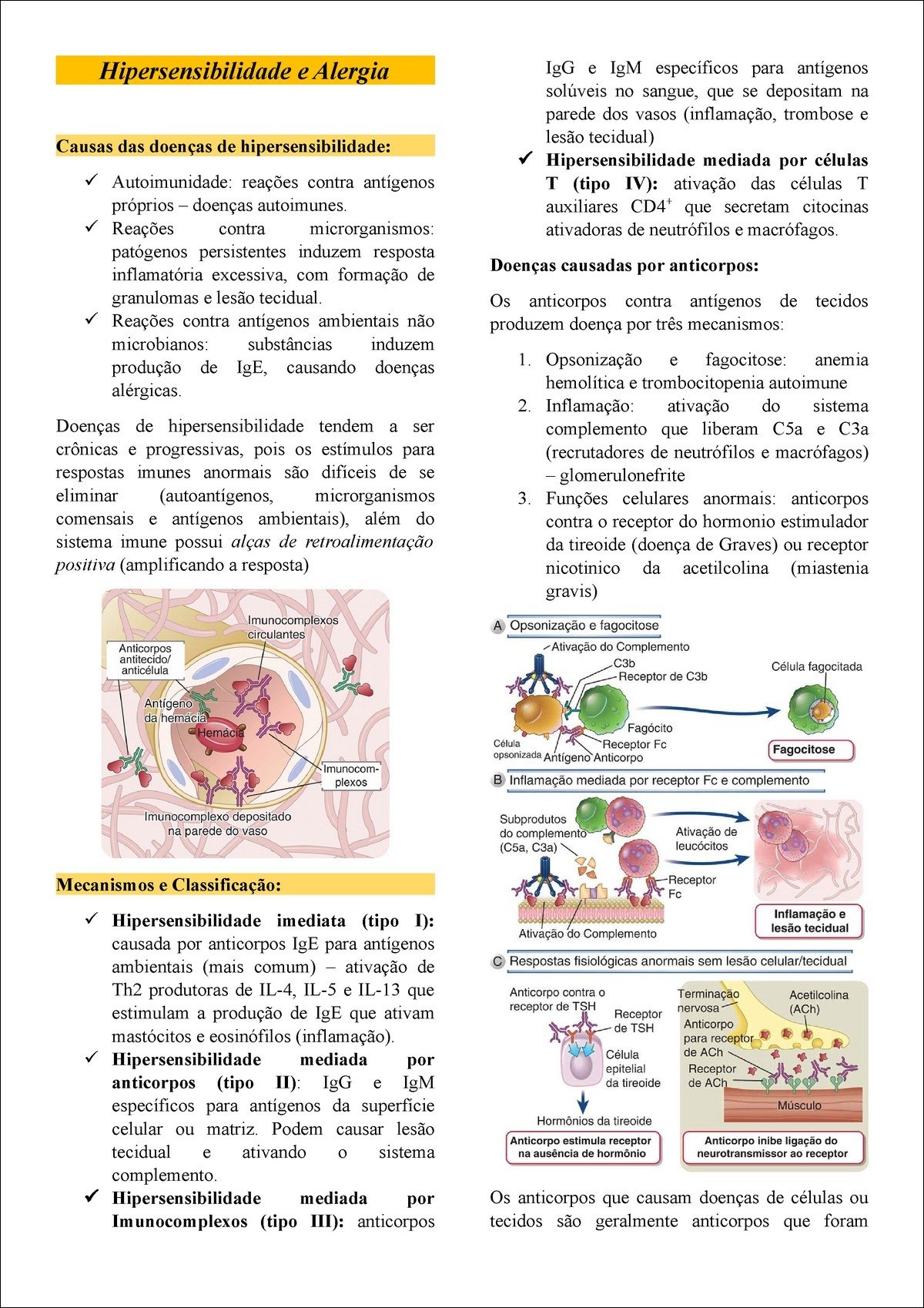 Compilação com os melhores mapas mentais, conceituais, infográficos, diagramas e resumos sobre hipersensibilidade.