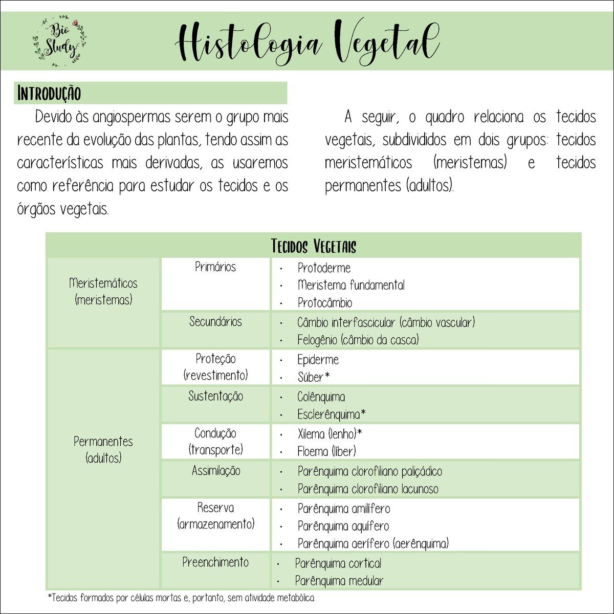 Resumo sobre histologia vegetal