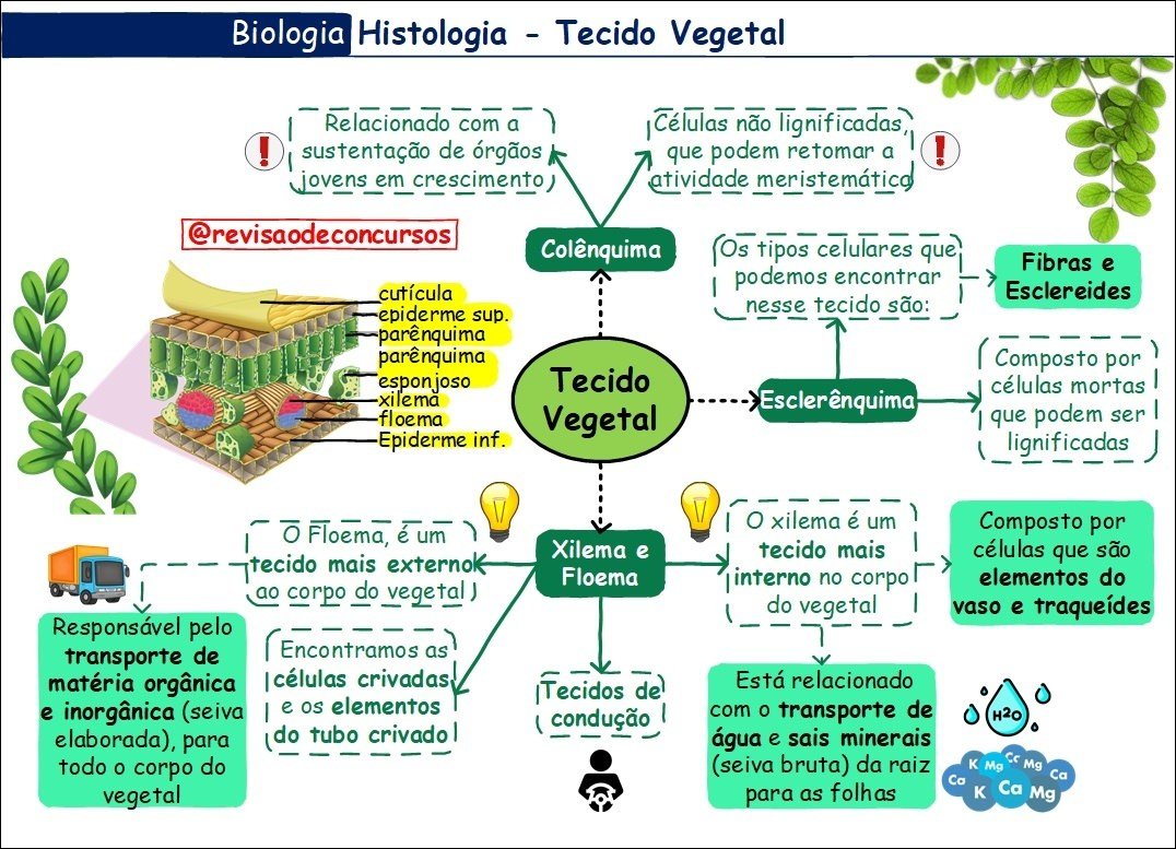 Compilação com os melhores mapas mentais, conceituais, infográficos, diagramas e resumos sobre histologia vegetal.