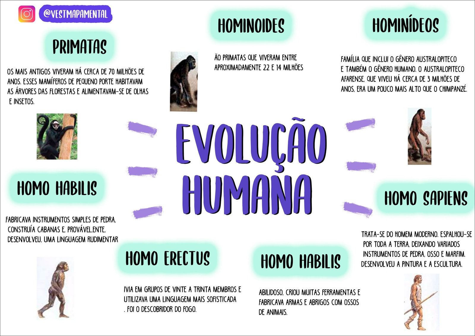 Compilação com os melhores mapas mentais, conceituais, infográficos, diagramas e resumos sobre homo habilis.