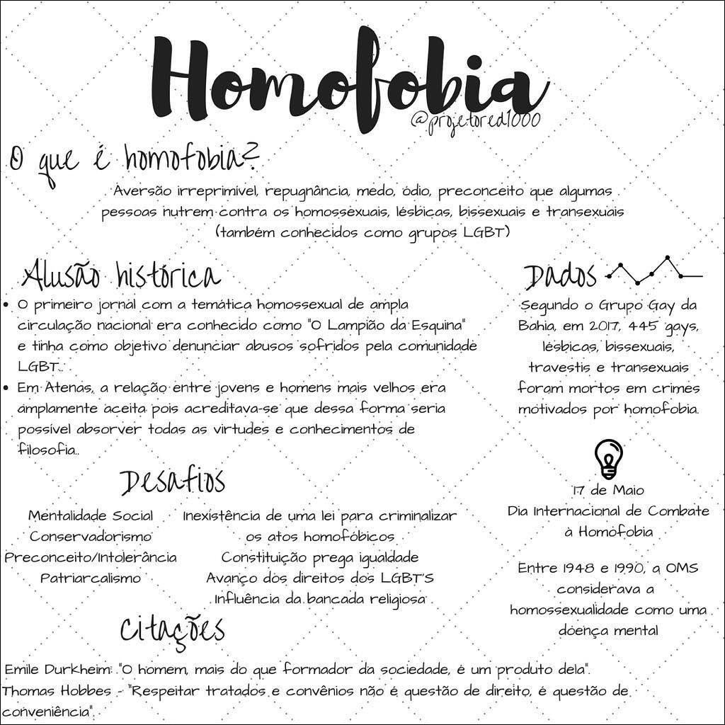 Compilação com os melhores mapas mentais, conceituais, infográficos, diagramas e resumos sobre homofobia.