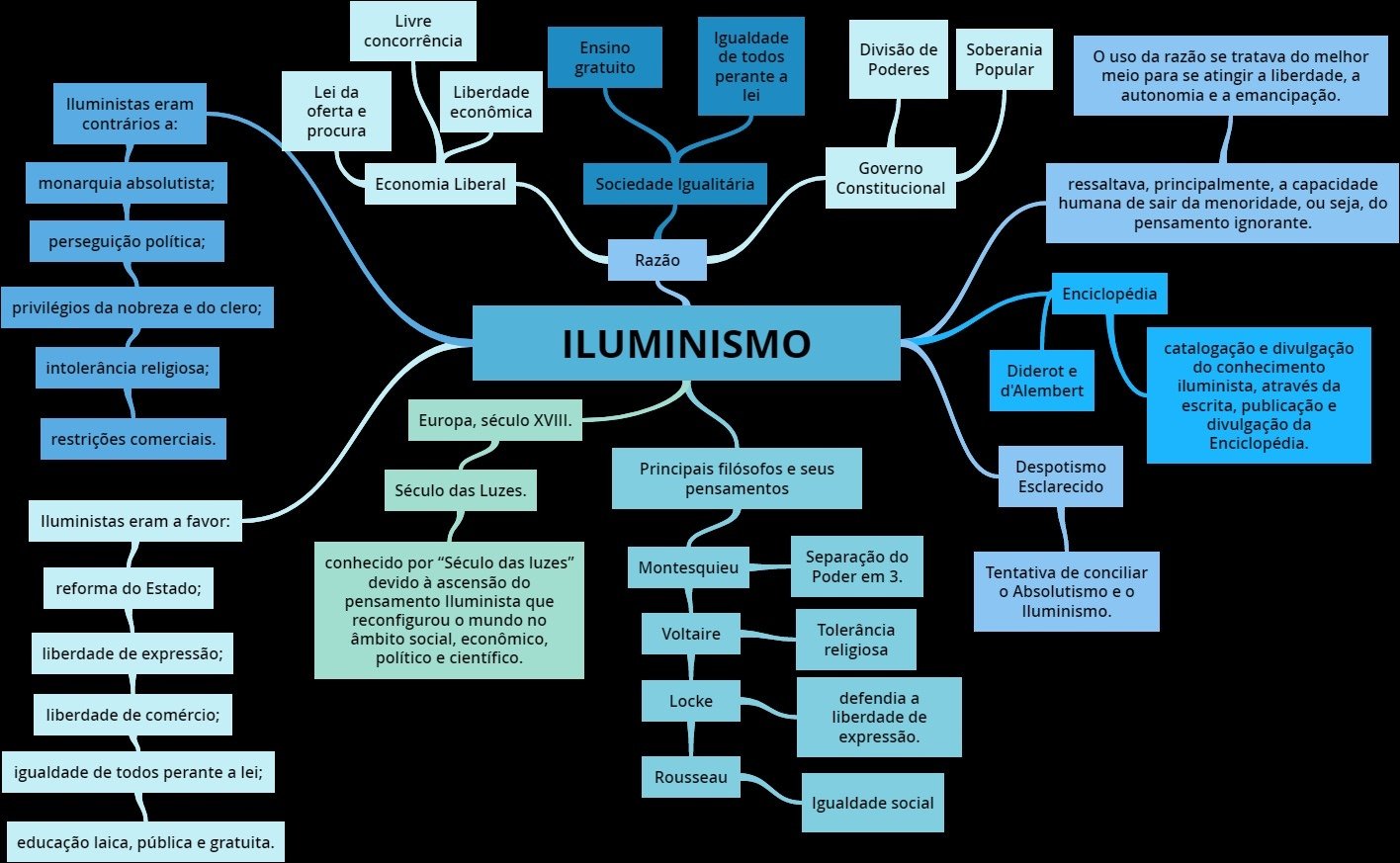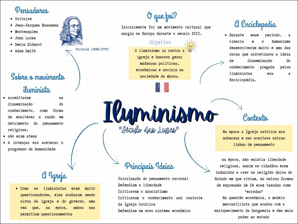 Compilação com os melhores mapas mentais, conceituais, infográficos, diagramas e resumos sobre iluminismo.