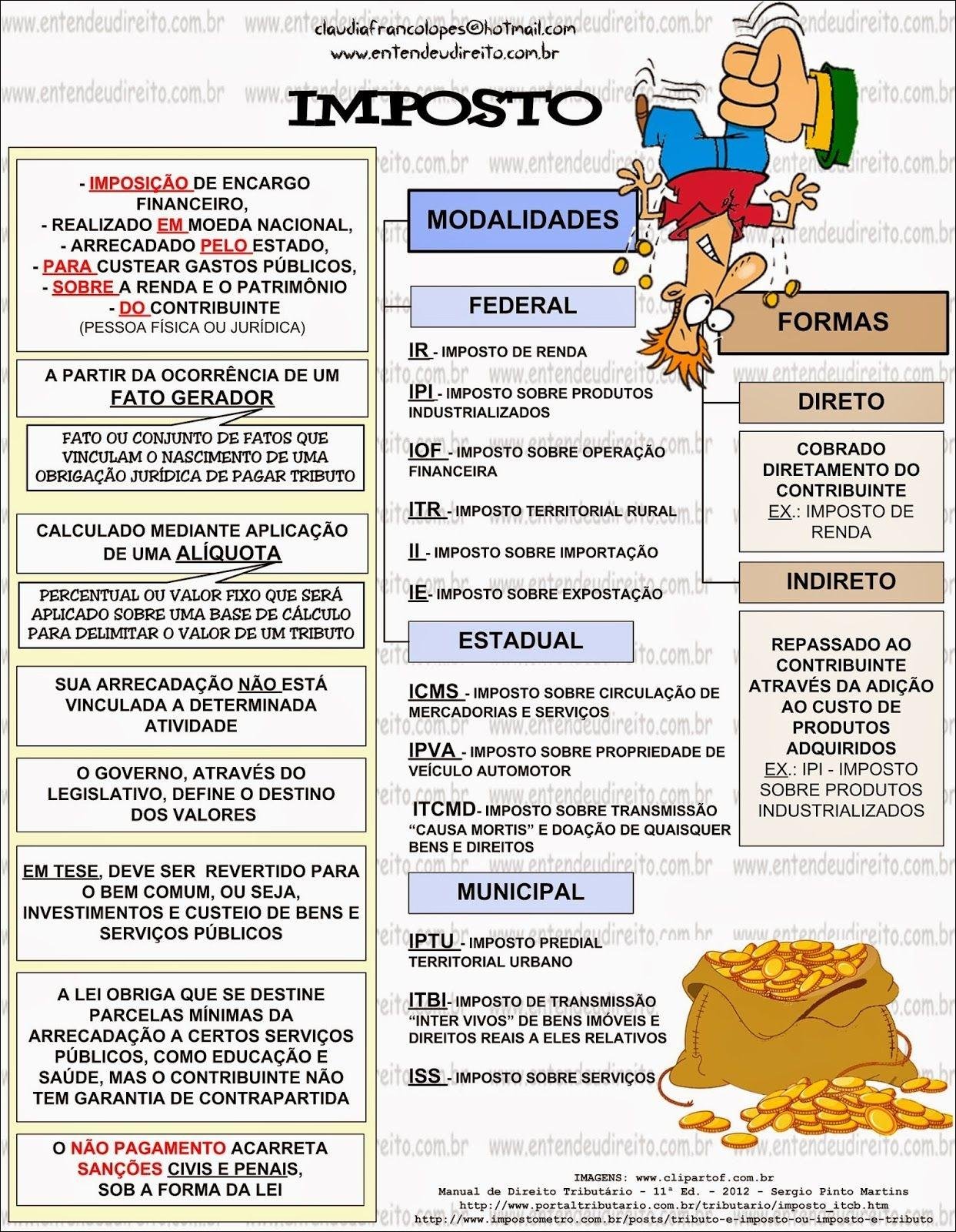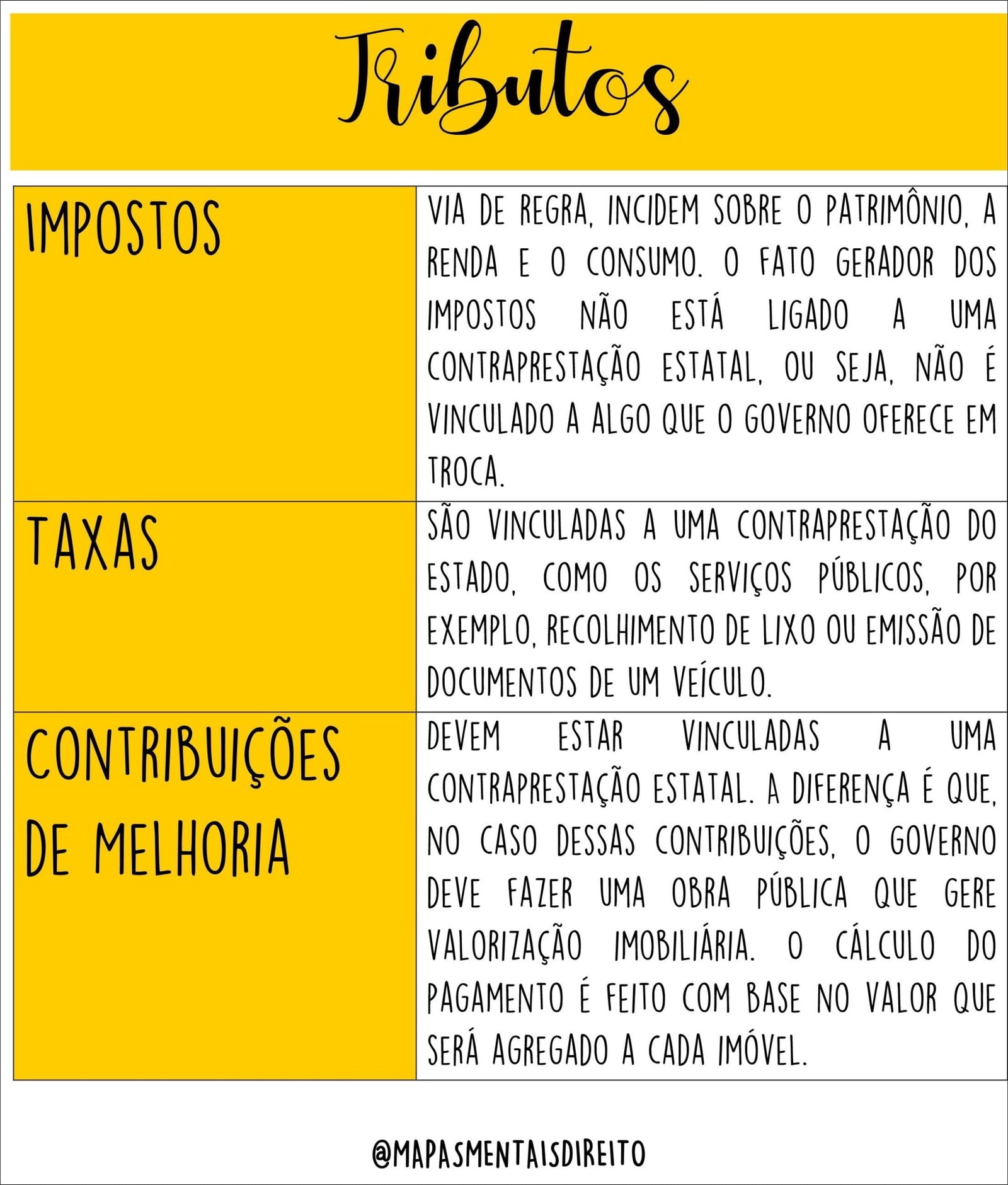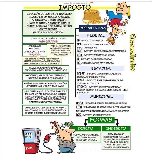 Compilação com os melhores mapas mentais, conceituais, infográficos, diagramas e resumos sobre impostos.
