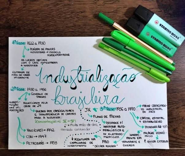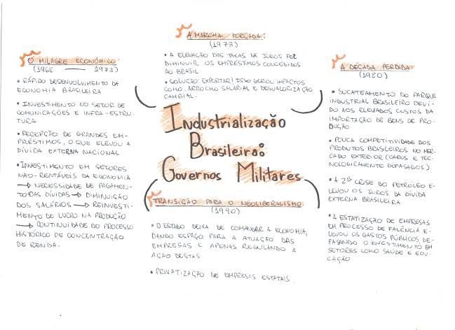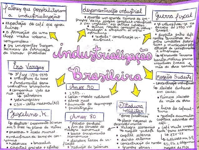 Compilação com os melhores mapas mentais, conceituais, infográficos, diagramas e resumos sobre Industrialização brasileira.