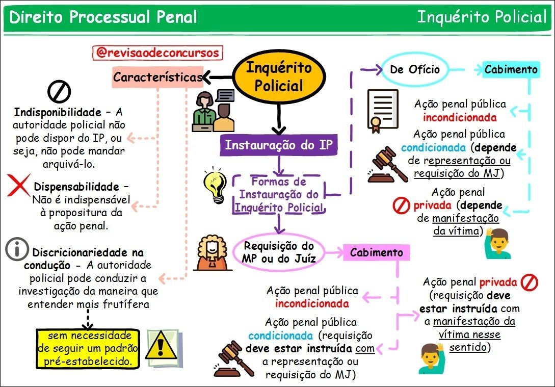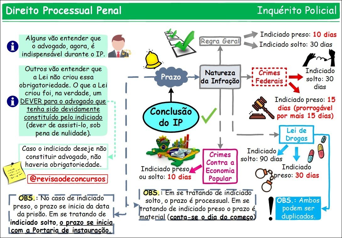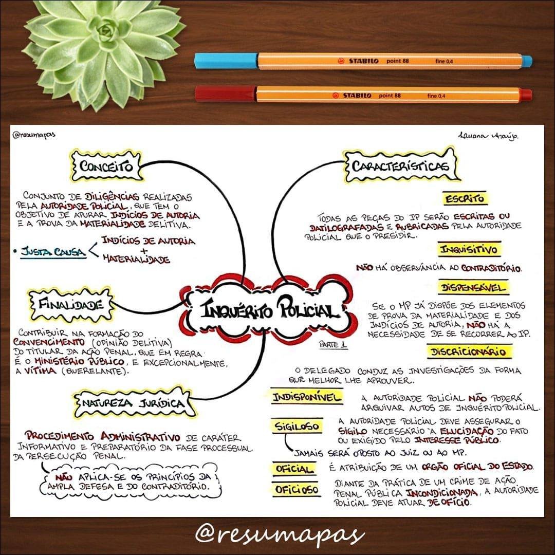Compilação com os melhores mapas mentais, conceituais, infográficos, diagramas e resumos sobre inquérito policial.