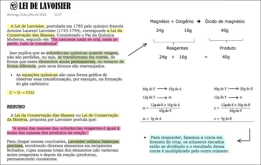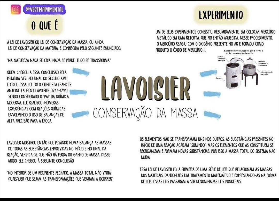 Compilação com os melhores mapas mentais, conceituais, infográficos, diagramas e resumos sobre Lei de Lavoisier.