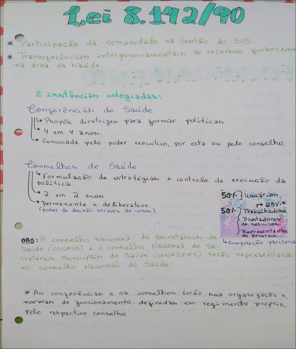 Compilação com os melhores mapas mentais, conceituais, infográficos, diagramas e resumos sobre Lei nº 8.142.