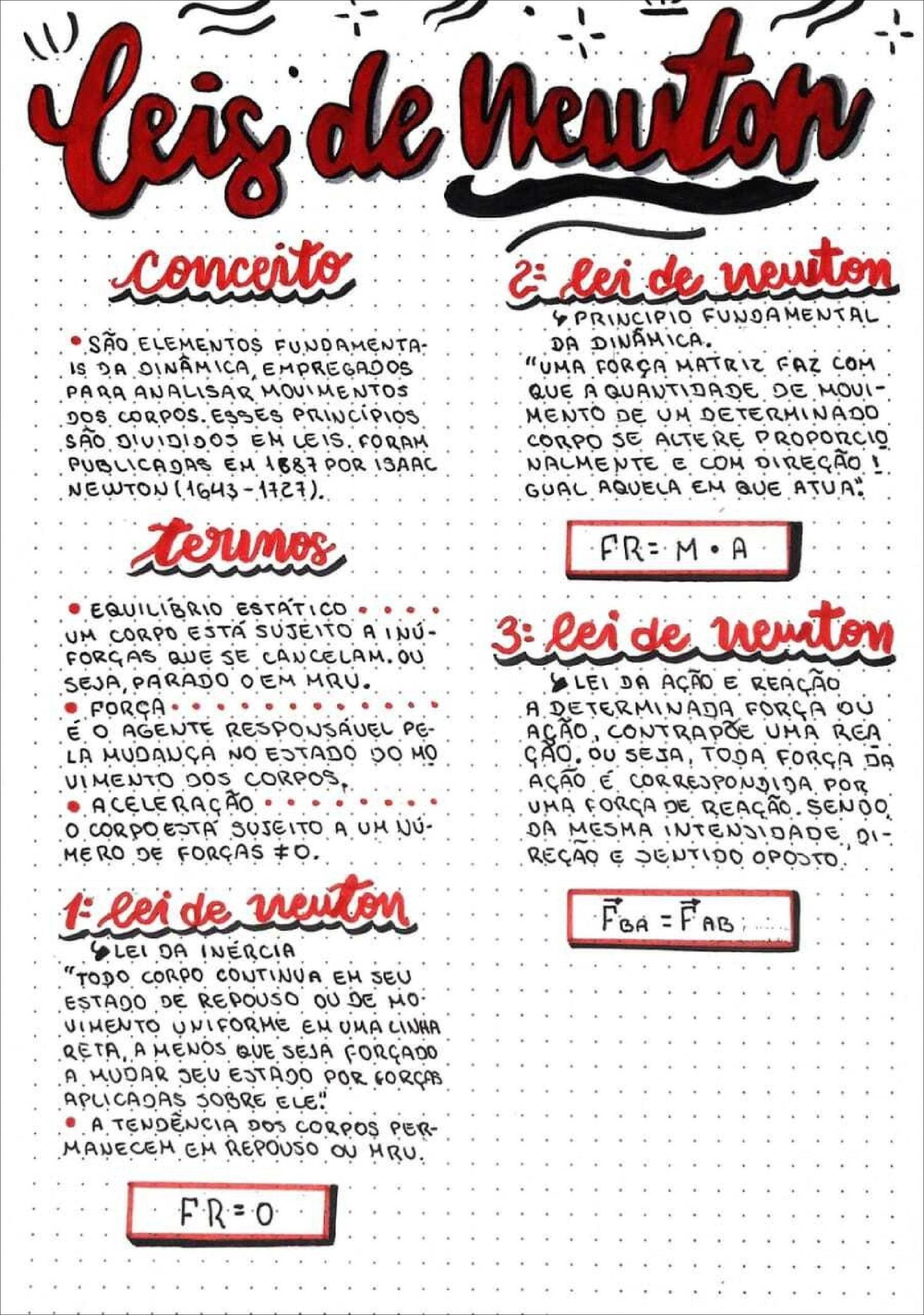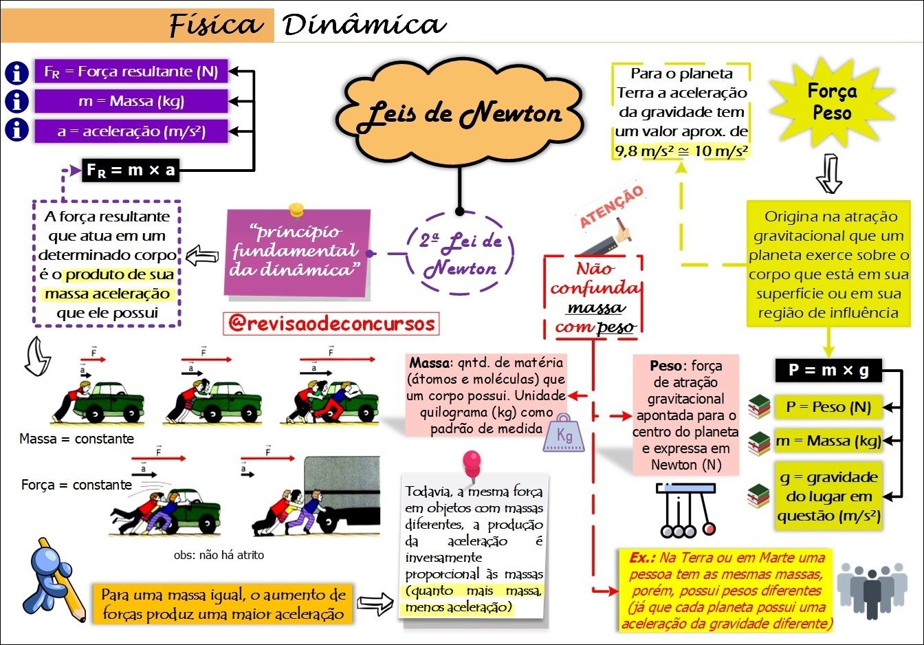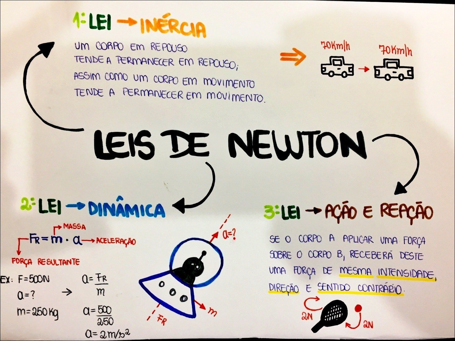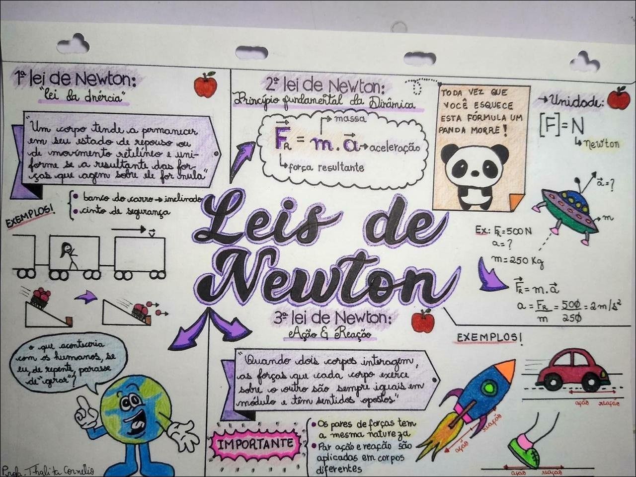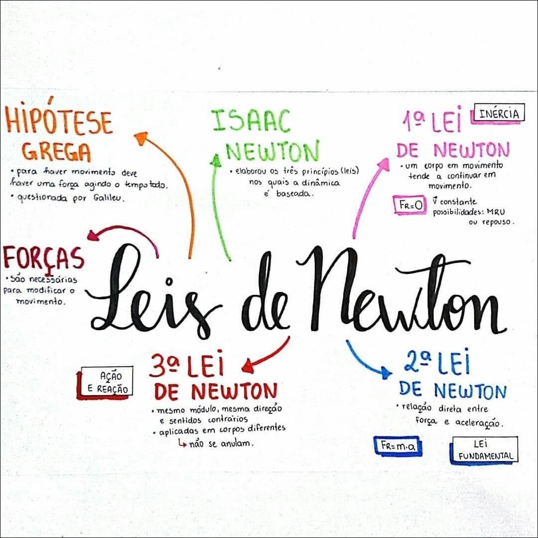 Compilação com os melhores mapas mentais, conceituais, infográficos, diagramas e resumos sobre Leis de Newton.