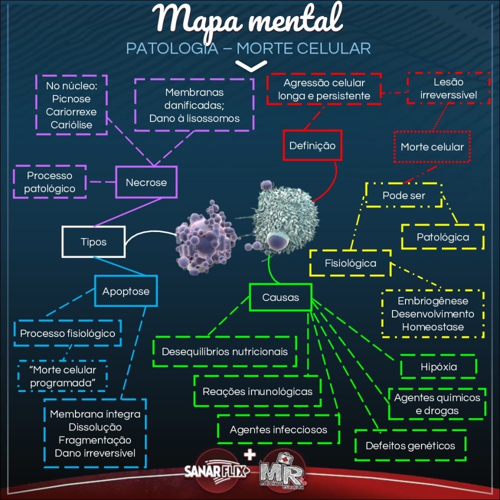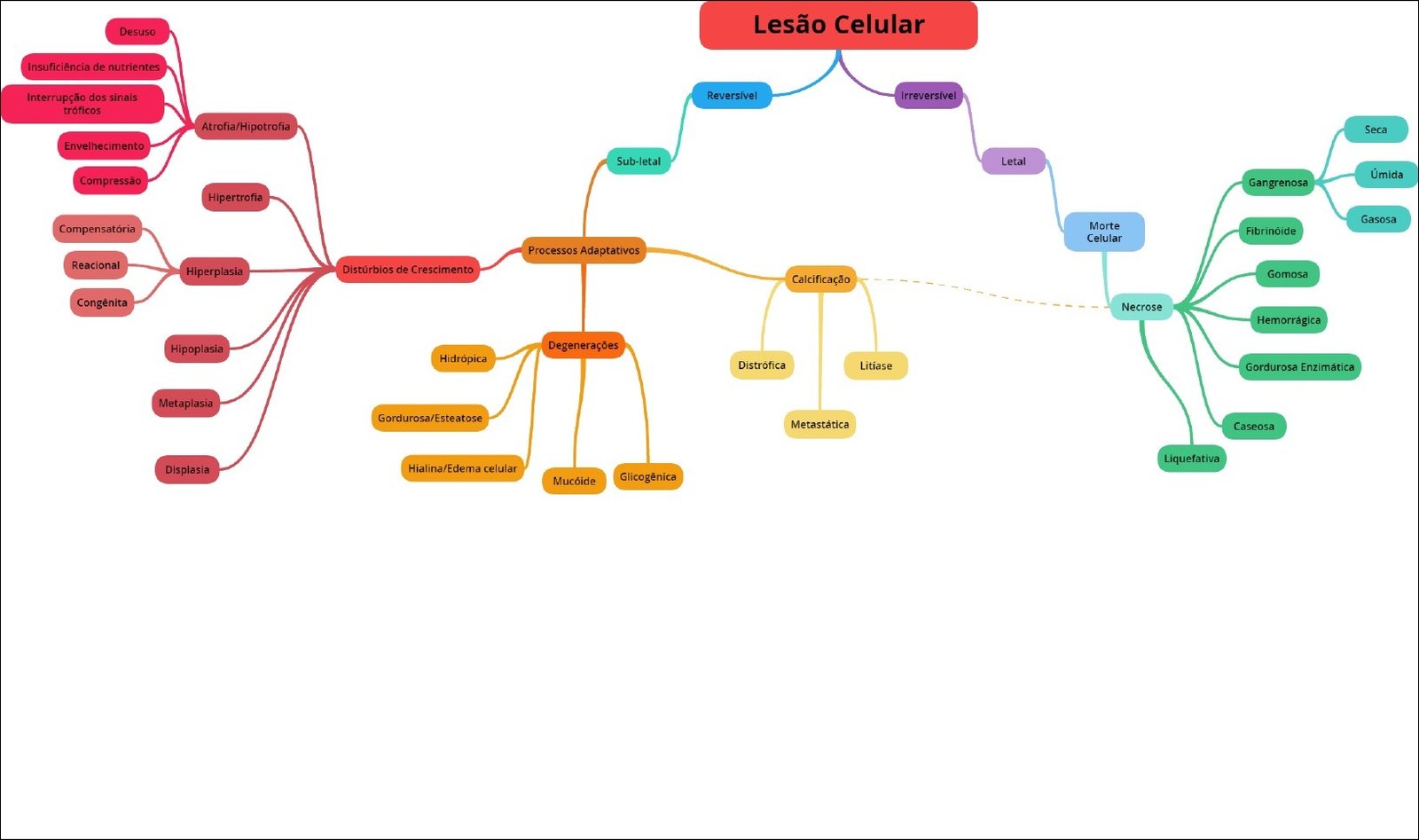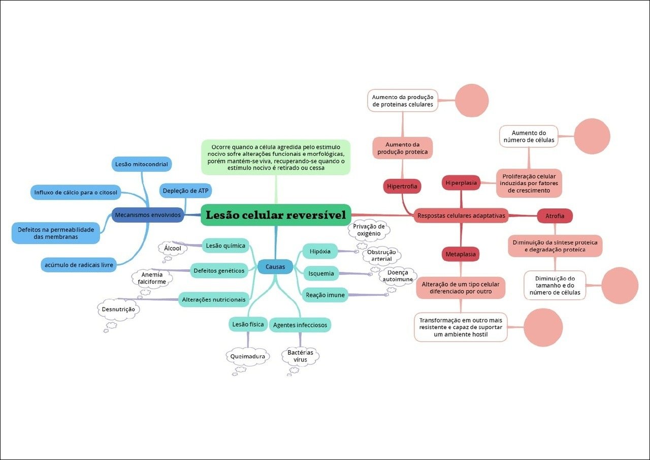 Compilação com os melhores mapas mentais, conceituais, infográficos, diagramas e resumos sobre lesão celular.
