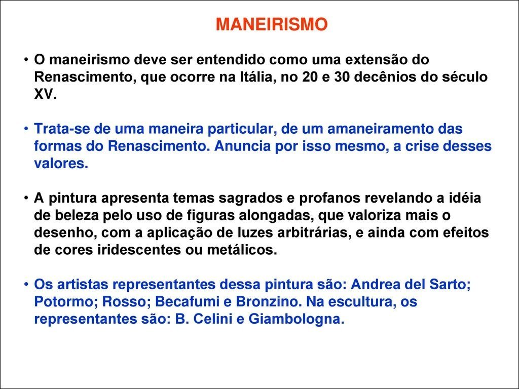 Resumo sobre Maneirismo