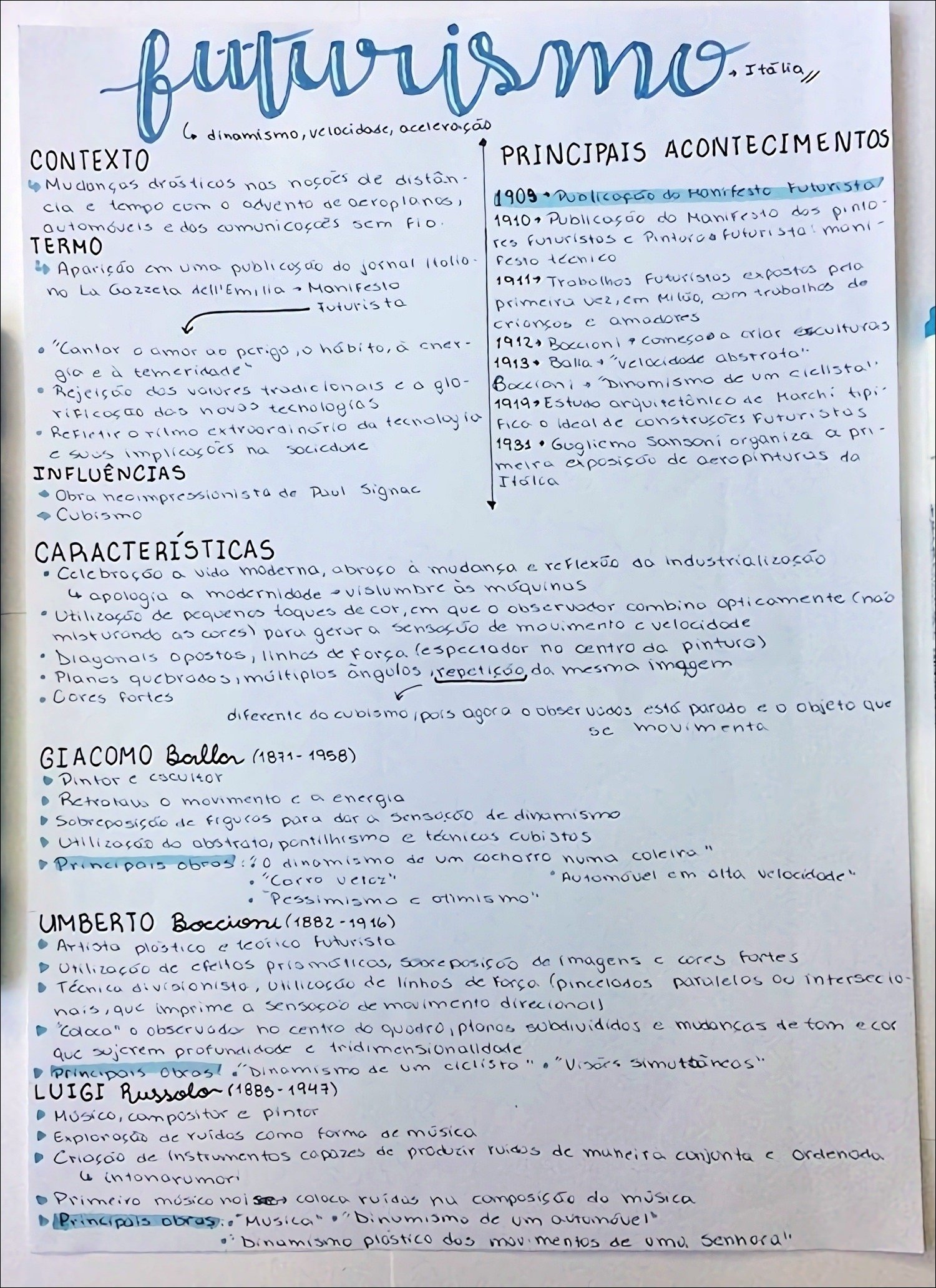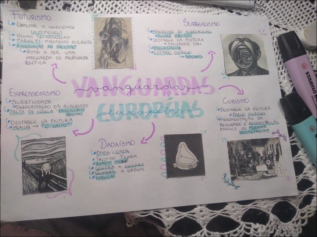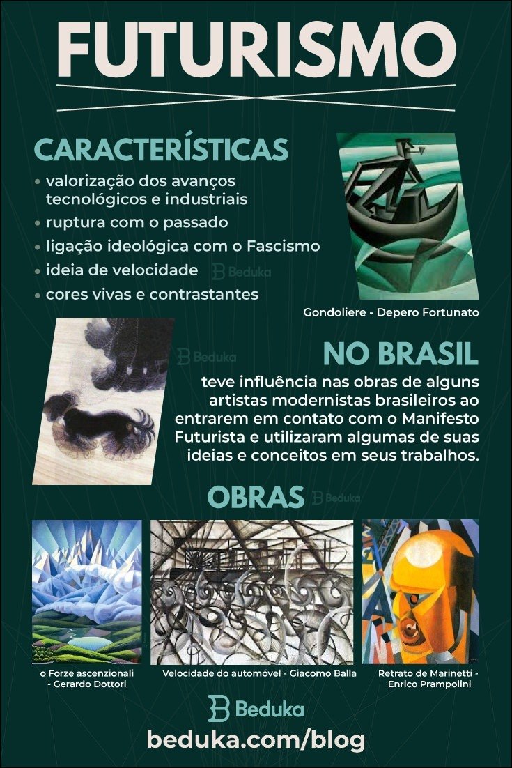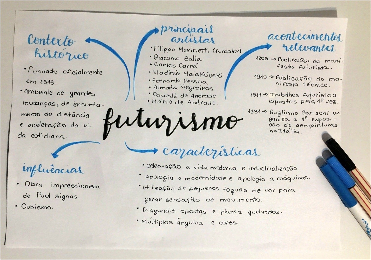 Compilação com os melhores mapas mentais, conceituais, infográficos, diagramas e resumos sobre manifesto futurista.