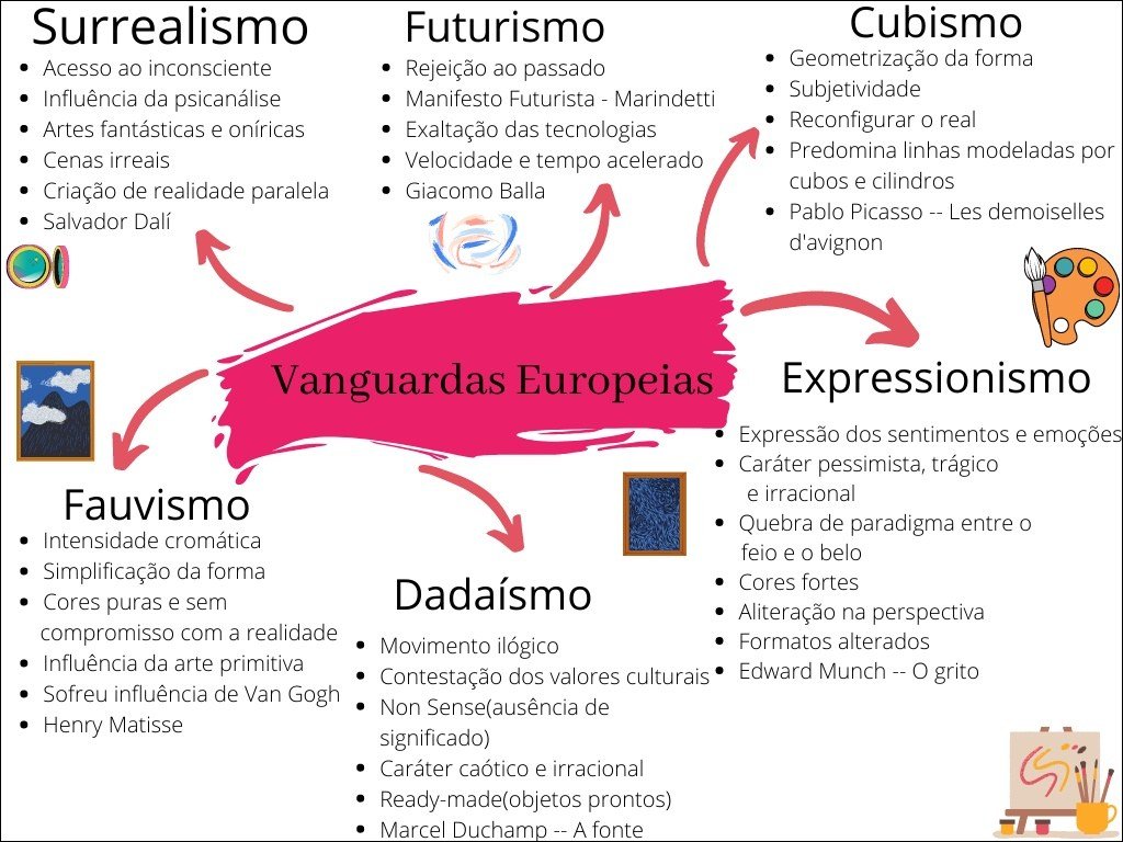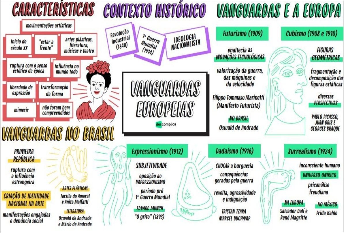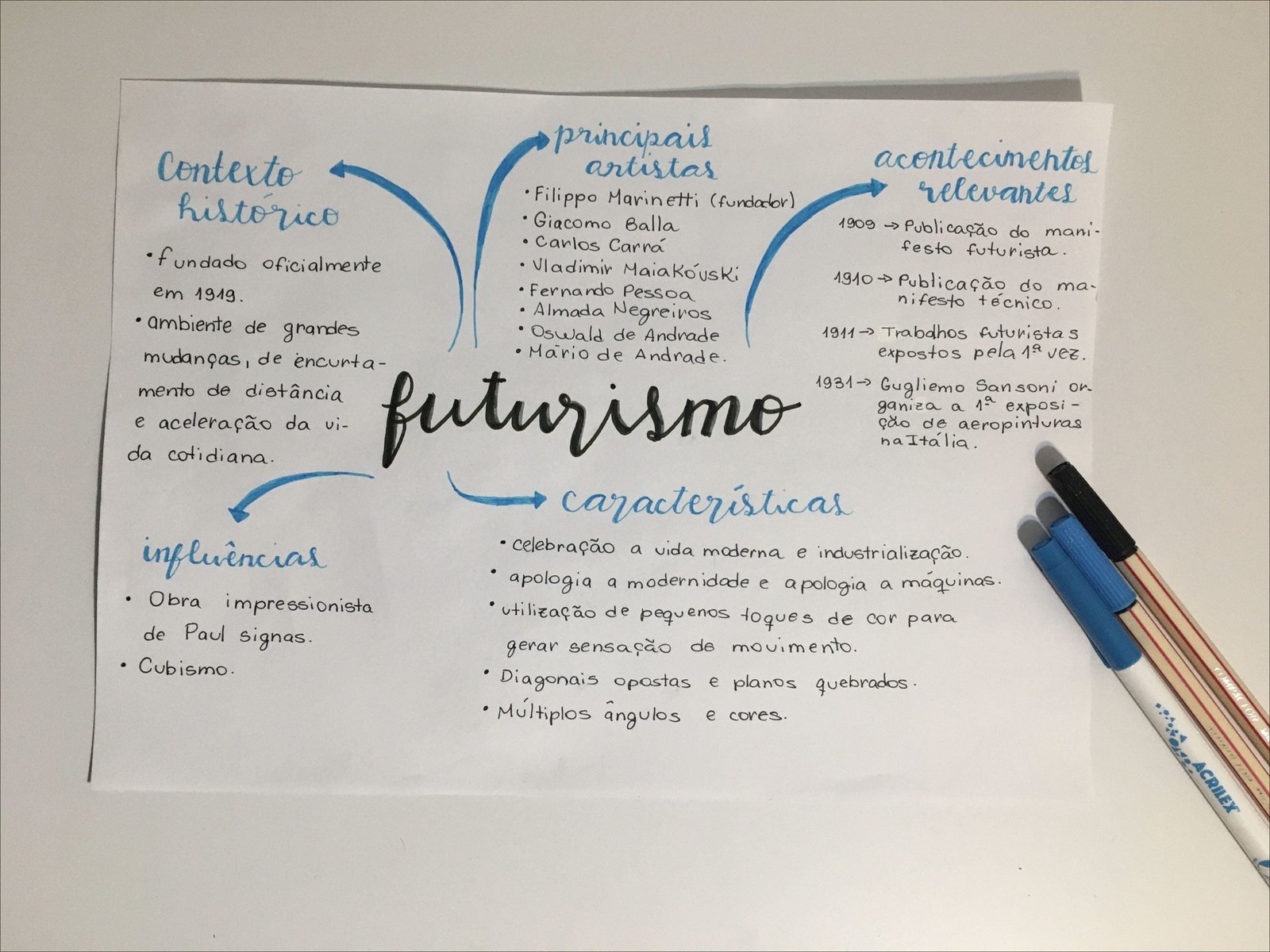 Compilação com os melhores mapas mentais, conceituais, infográficos, diagramas e resumos sobre manifesto futurista.