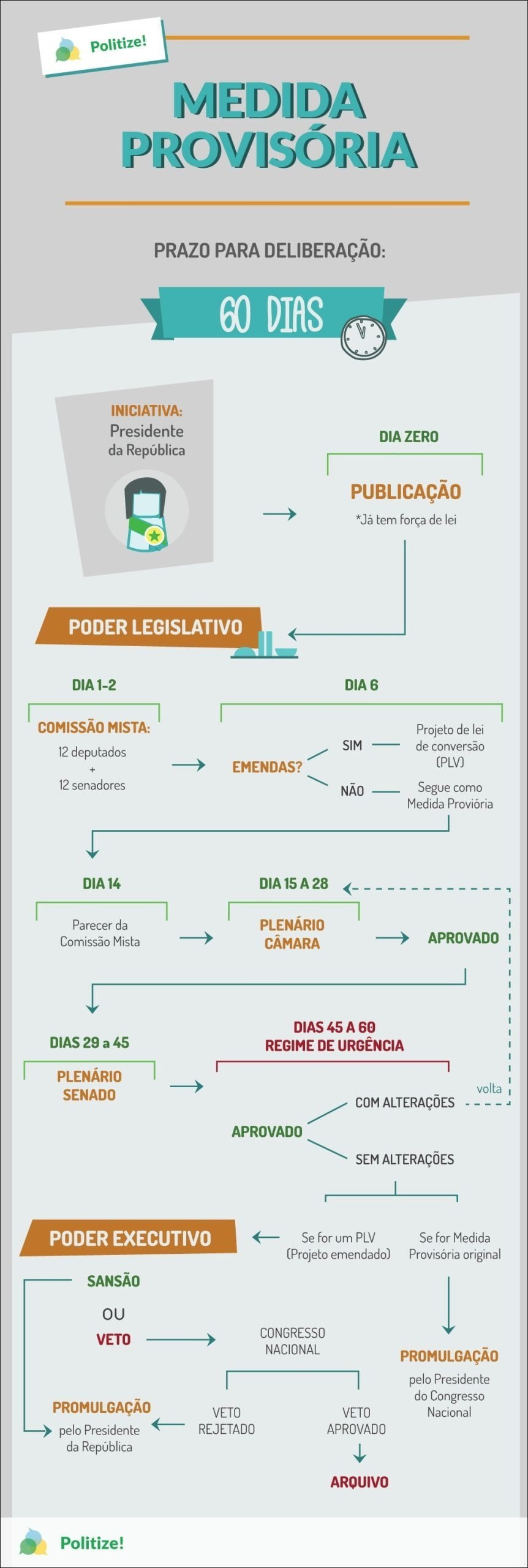 Após a publicação, a MP tem prazo de validade de 60 dias, prorrogável por mais 60 dias. Durante esse período, o Congresso Nacional deve votar a medida. Se a MP não for apreciada dentro desse prazo, ela perde sua validade, e os efeitos produzidos anteriormente são regulamentados por lei específica. Se o Congresso aprovar a MP, ela se transforma em lei. Caso seja rejeitada, os efeitos já produzidos podem ser regulamentados por uma resolução do Congresso. O processo de tramitação no Congresso pode levar à aprovação da MP com alterações, originando um novo texto legal.