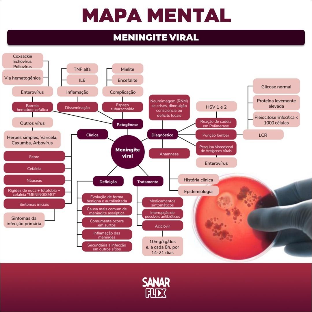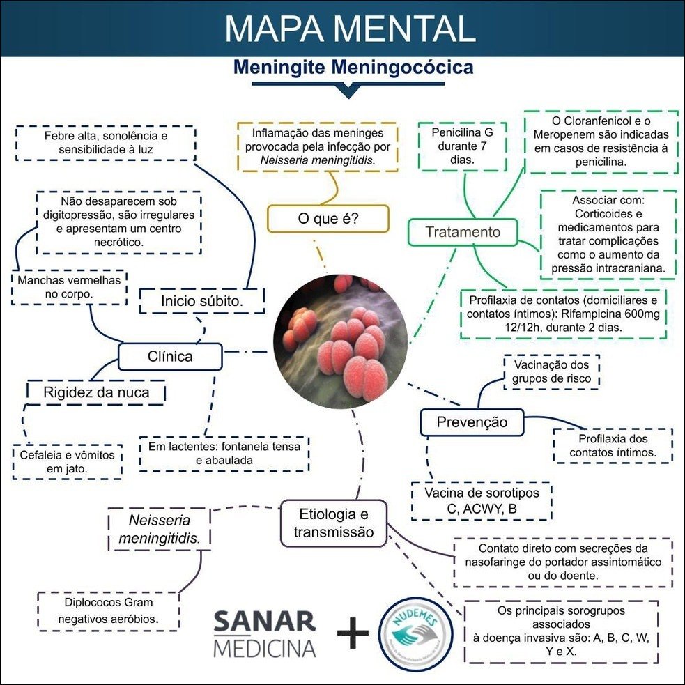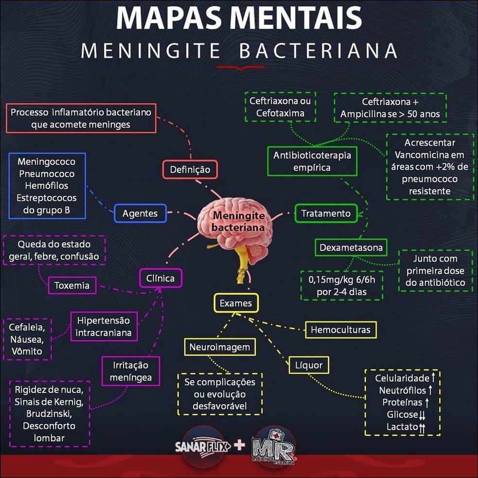 Compilação com os melhores mapas mentais, conceituais, infográficos, diagramas e resumos sobre meningite.