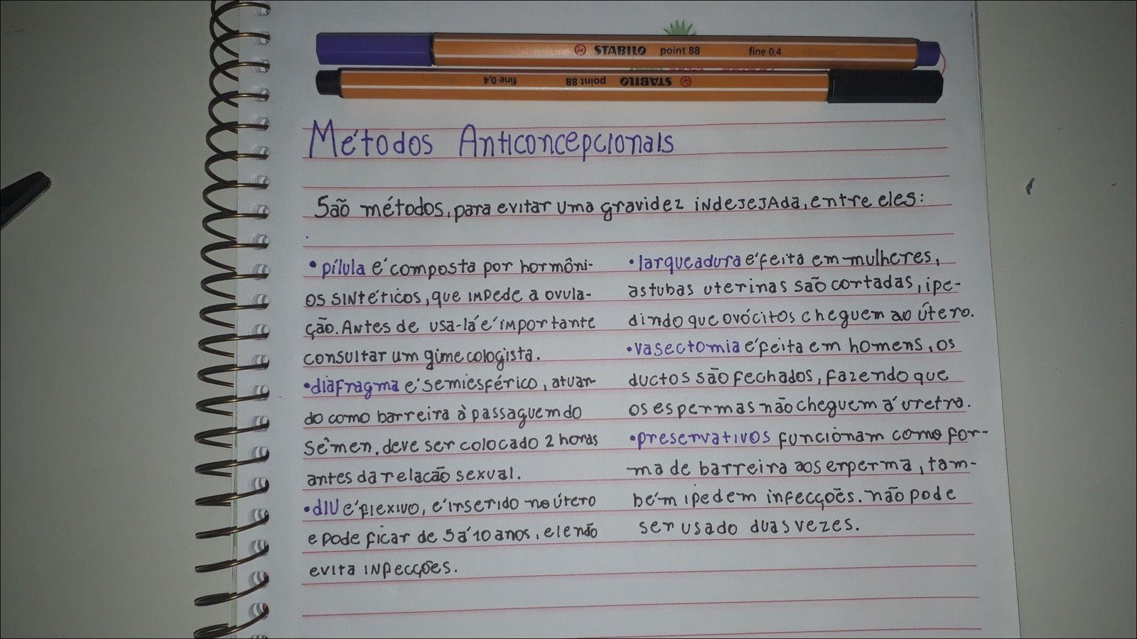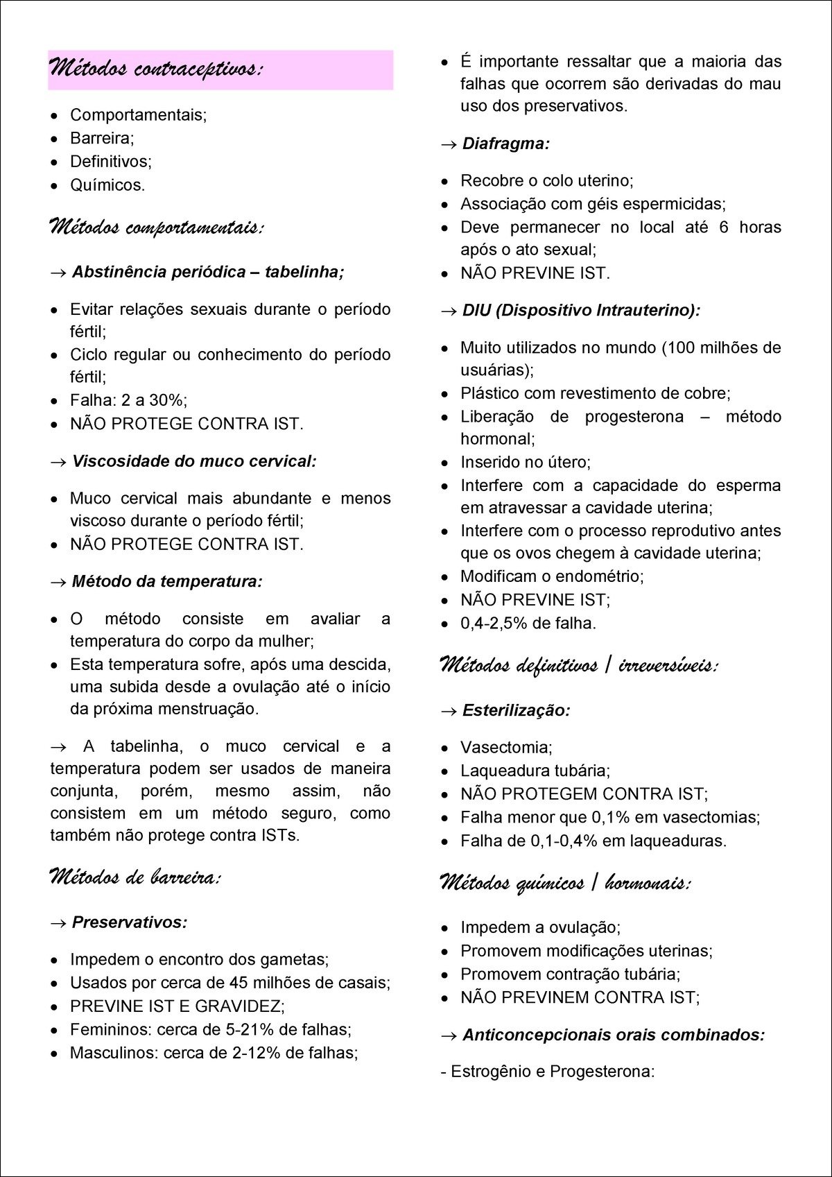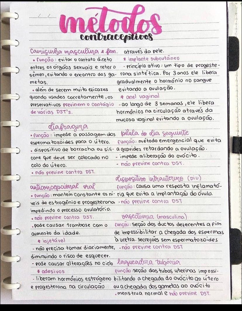 Resumo sobre métodos contraceptivos
