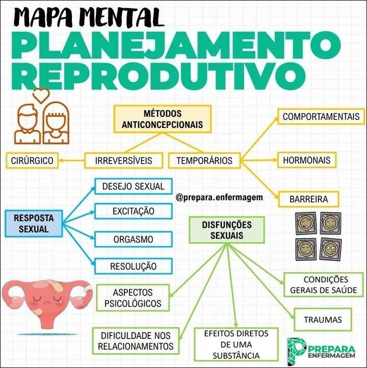 Compilação com os melhores mapas mentais, conceituais, infográficos, diagramas e resumos sobre métodos contraceptivos.