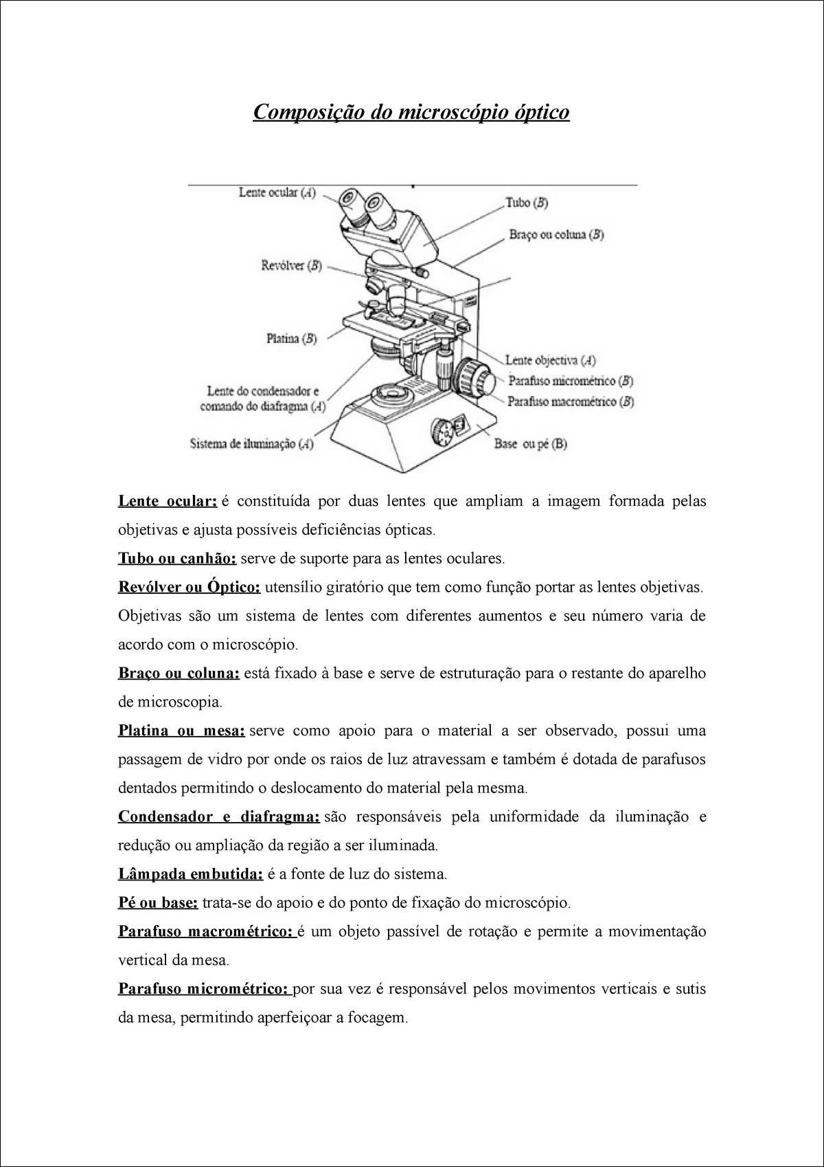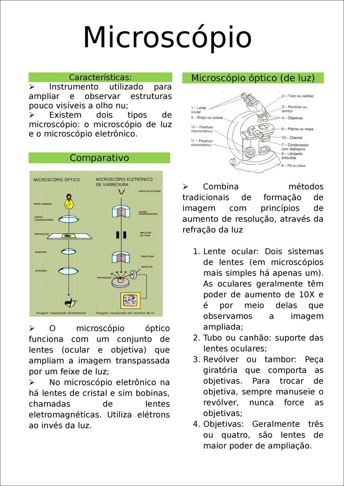 Resumo sobre microscópio