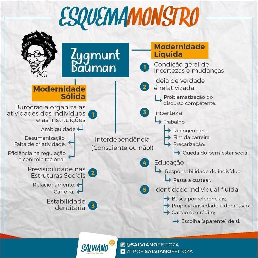 Compilação com os melhores mapas mentais, conceituais, infográficos, diagramas e resumos sobre Modernidade líquida.