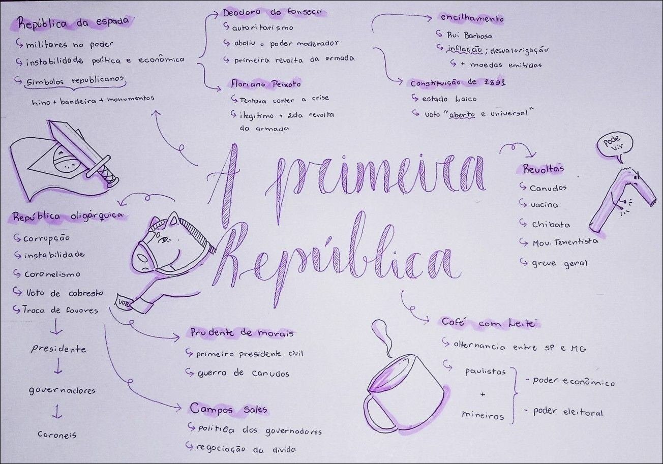 Compilação com os melhores mapas mentais, conceituais, infográficos, diagramas e resumos sobre movimento tenentista.