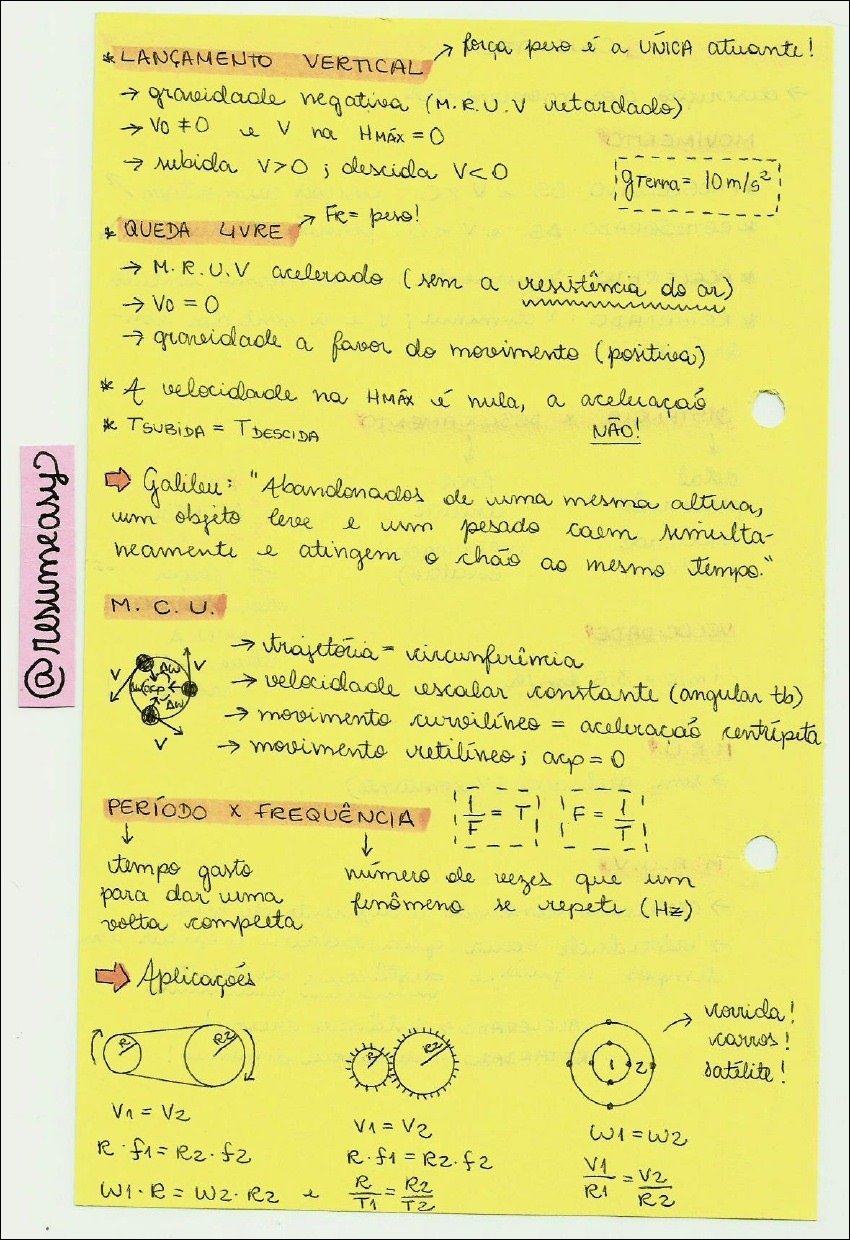 Compilação com os melhores mapas mentais, conceituais, infográficos, diagramas e resumos sobre movimento vertical.