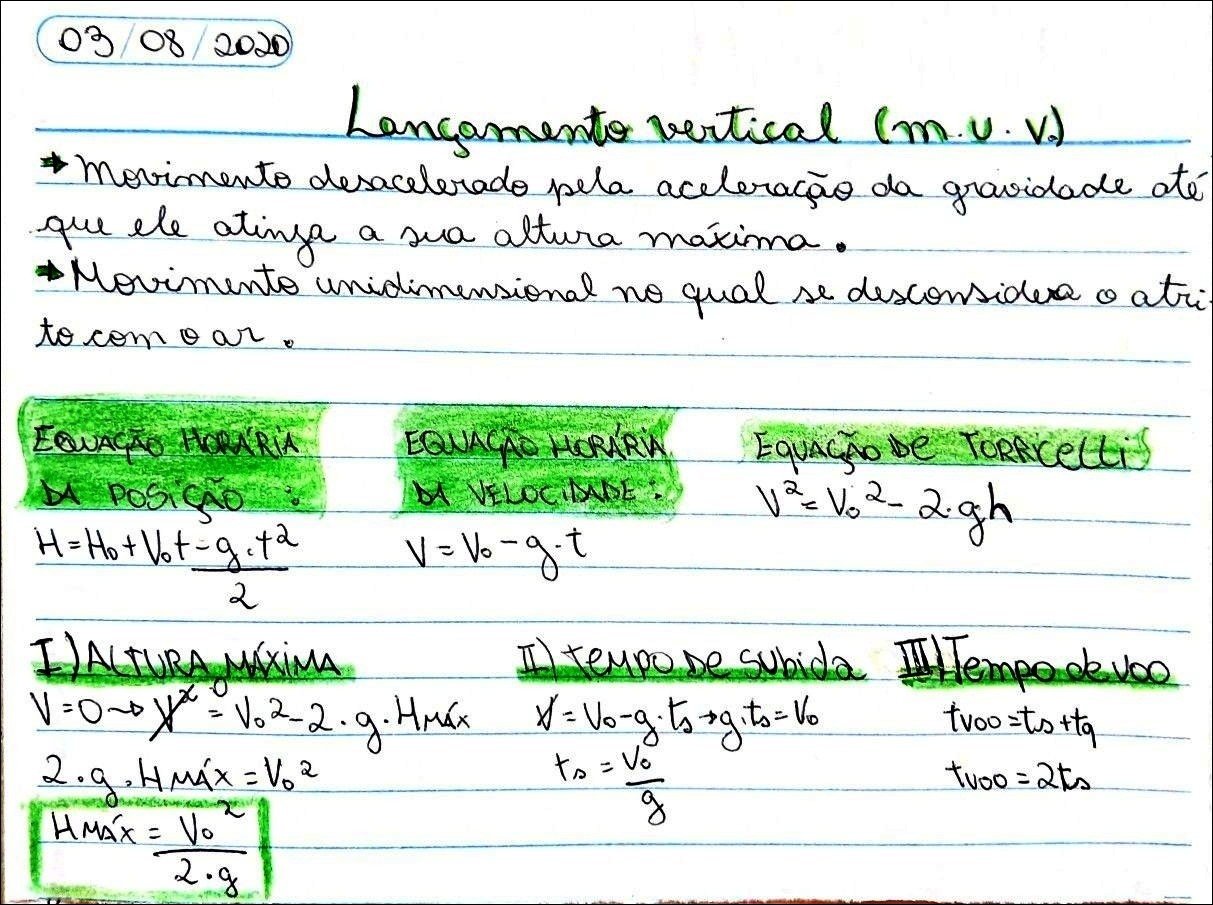 Resumo sobre movimento vertical