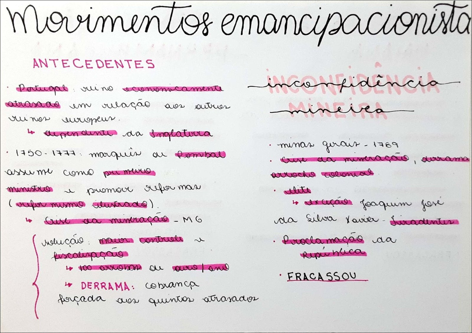 Compilação com os melhores mapas mentais, conceituais, infográficos, diagramas e resumos sobre movimentos emancipacionistas.