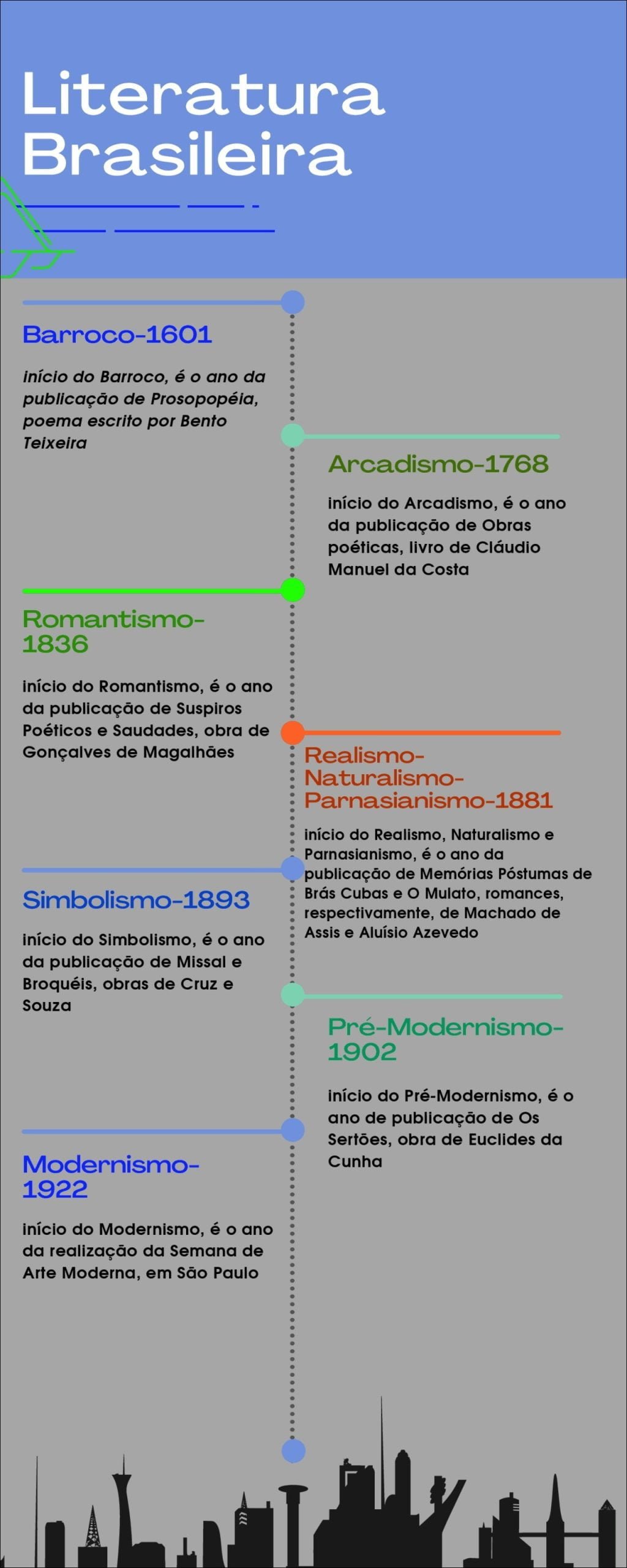 Compilação com os melhores mapas mentais, conceituais, infográficos, diagramas e resumos sobre movimentos literários.