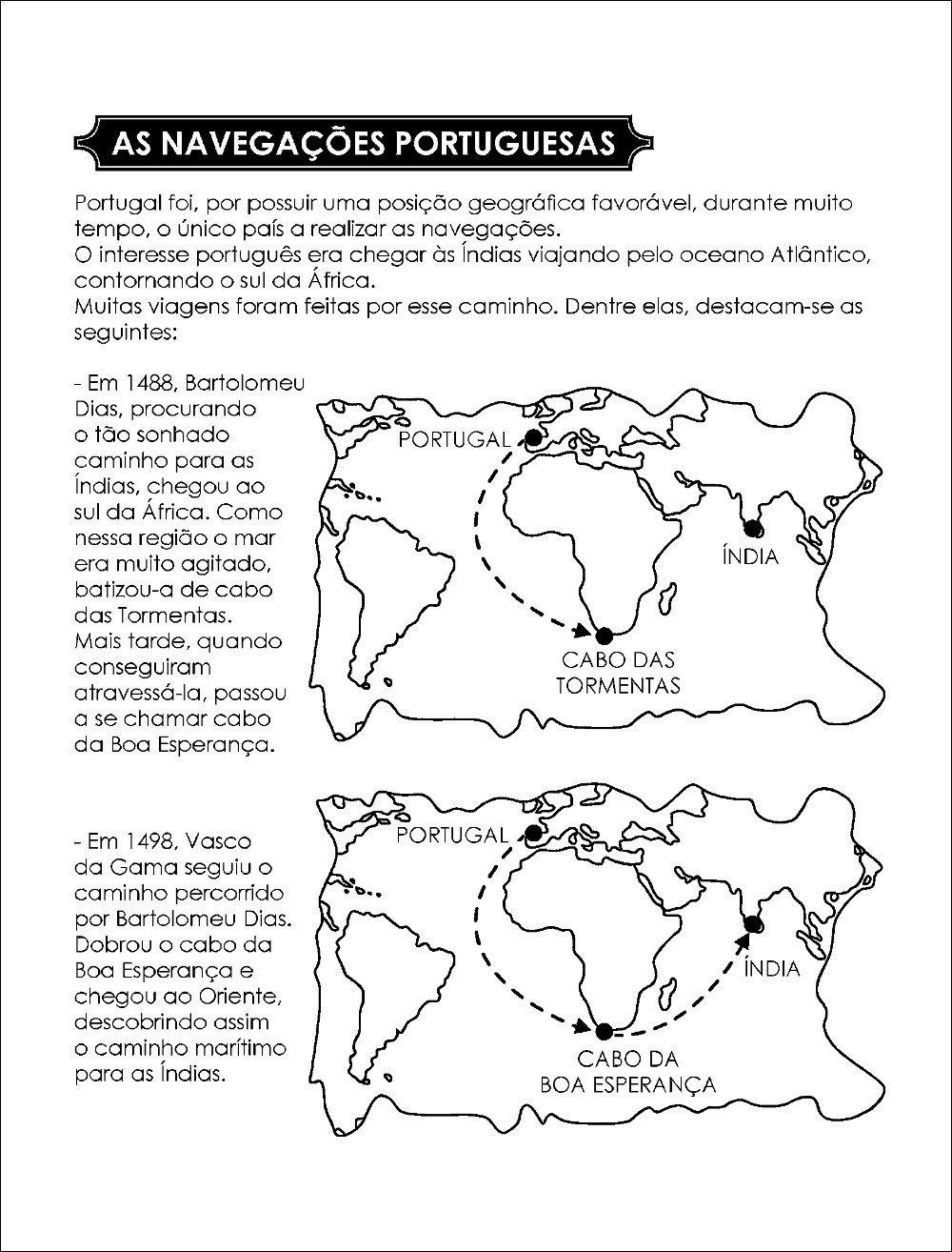 As explorações portuguesas foram impulsionadas por avanços tecnológicos como a caravela, um navio ágil e capaz de navegar contra o vento. Bartolomeu Dias dobrou o Cabo da Boa Esperança em 1488, abrindo o caminho para o Oceano Índico. Vasco da Gama, em 1498, finalmente alcançou a Índia, estabelecendo uma rota comercial direta e lucrativa para as especiarias.