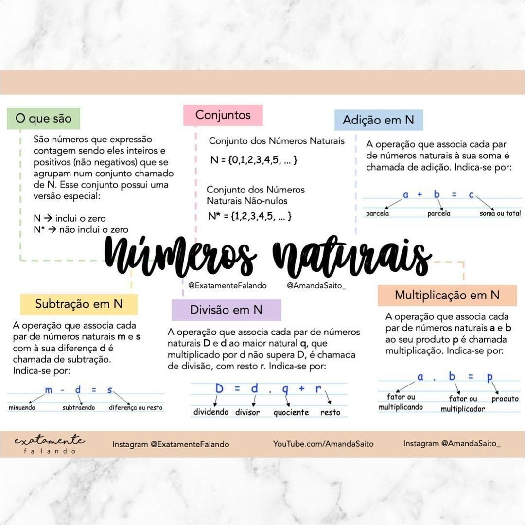 Compilação com os melhores mapas mentais, conceituais, infográficos, diagramas e resumos sobre Números naturais.