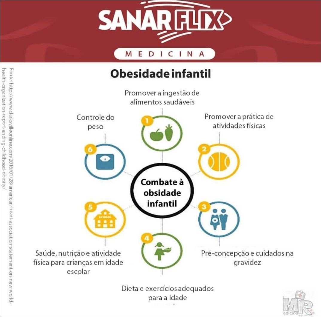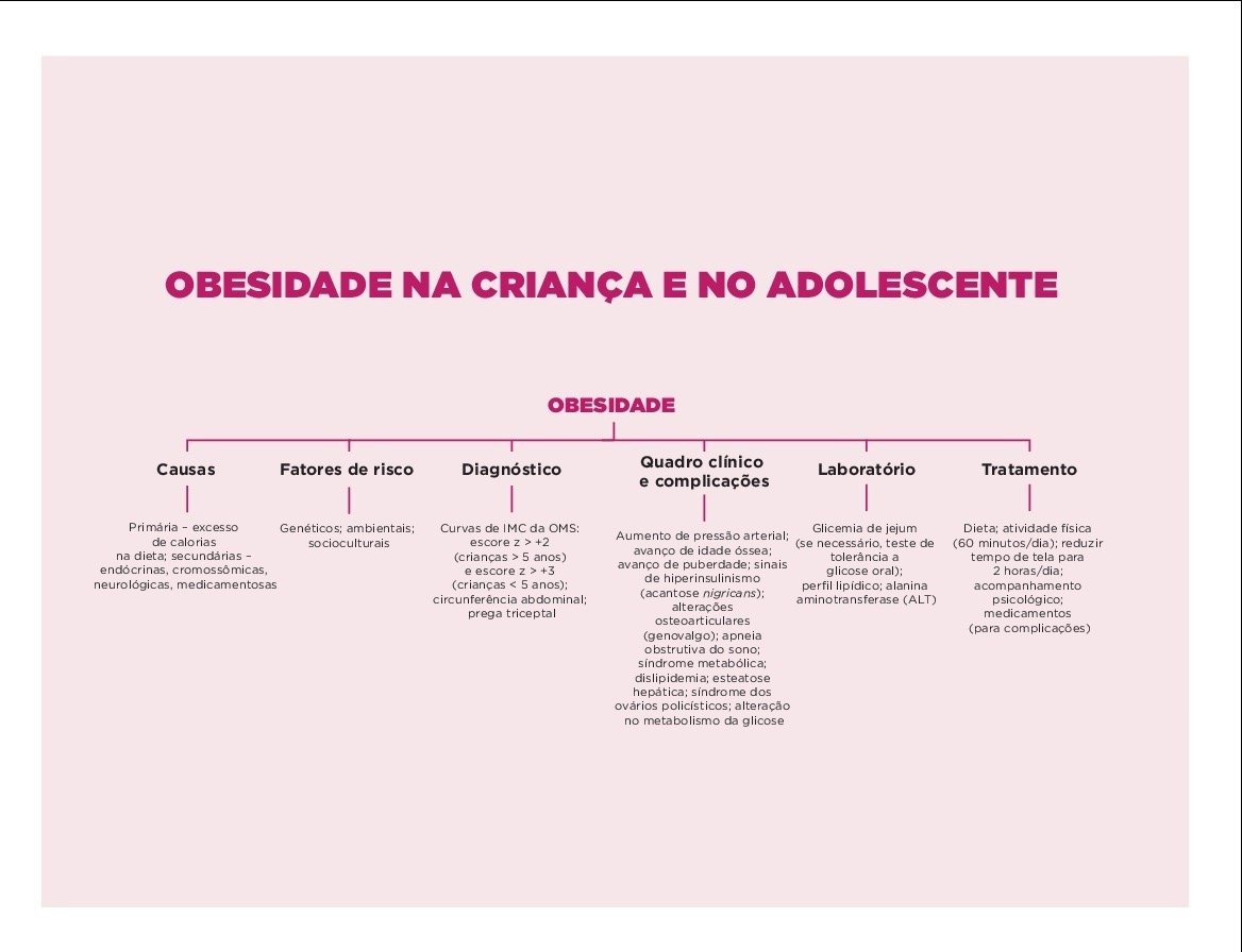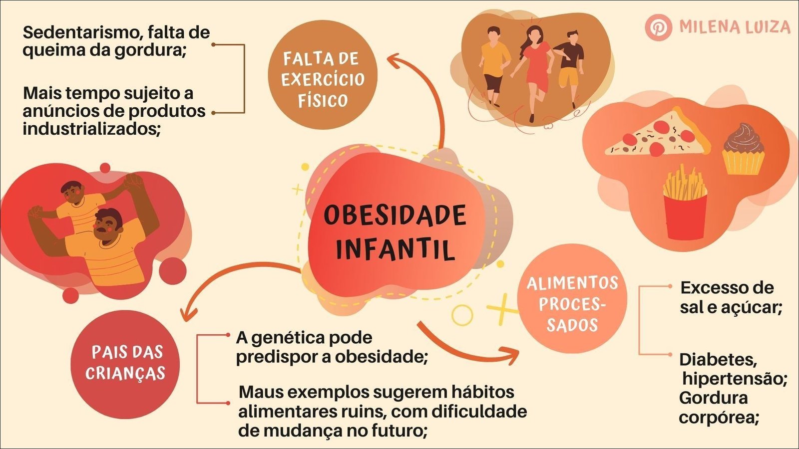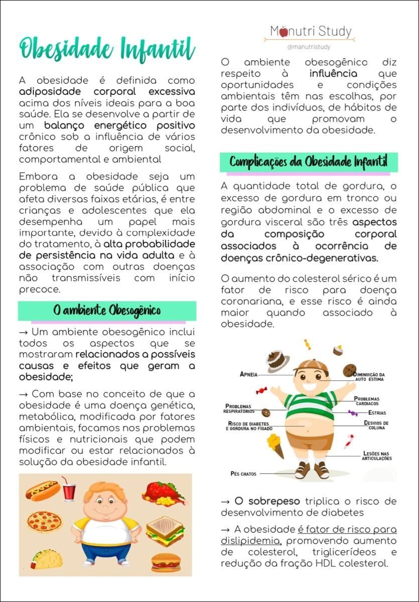 Compilação com os melhores mapas mentais, conceituais, infográficos, diagramas e resumos sobre obesidade infantil.