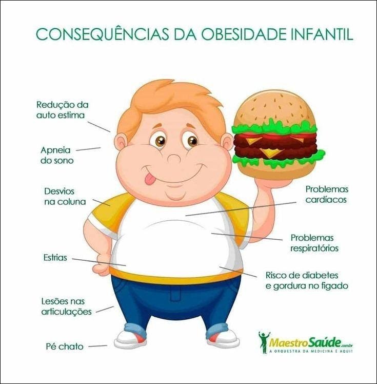 As consequências da obesidade infantil são diversas e graves. Crianças obesas têm maior probabilidade de desenvolver problemas de saúde como diabetes tipo 2, pressão alta, doenças cardíacas, problemas respiratórios, problemas ortopédicos e distúrbios do sono. Além disso, a obesidade infantil pode levar a problemas emocionais e sociais, como baixa autoestima, bullying e depressão.