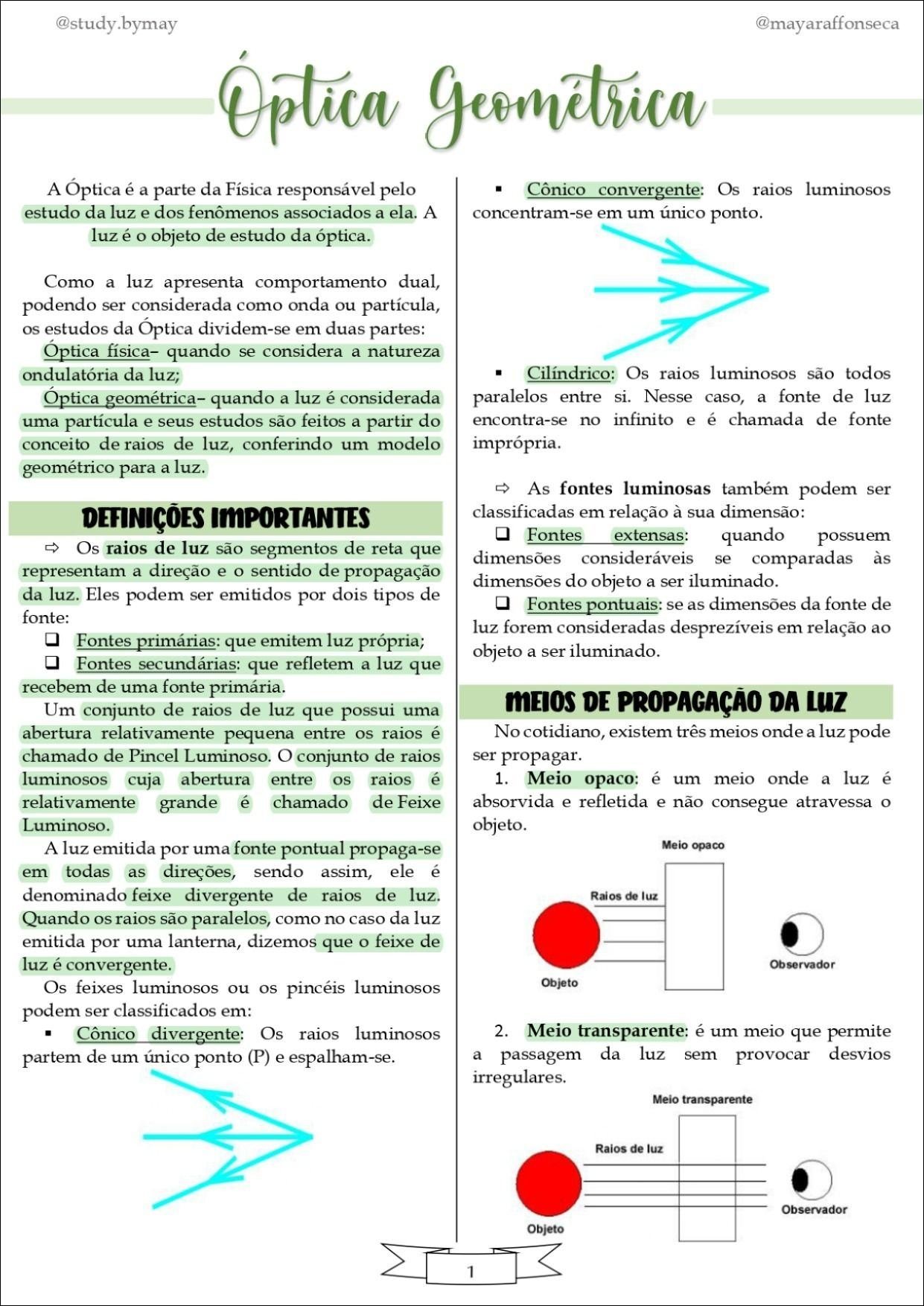 Compilação com os melhores mapas mentais, conceituais, infográficos, diagramas e resumos sobre Óptica física.
