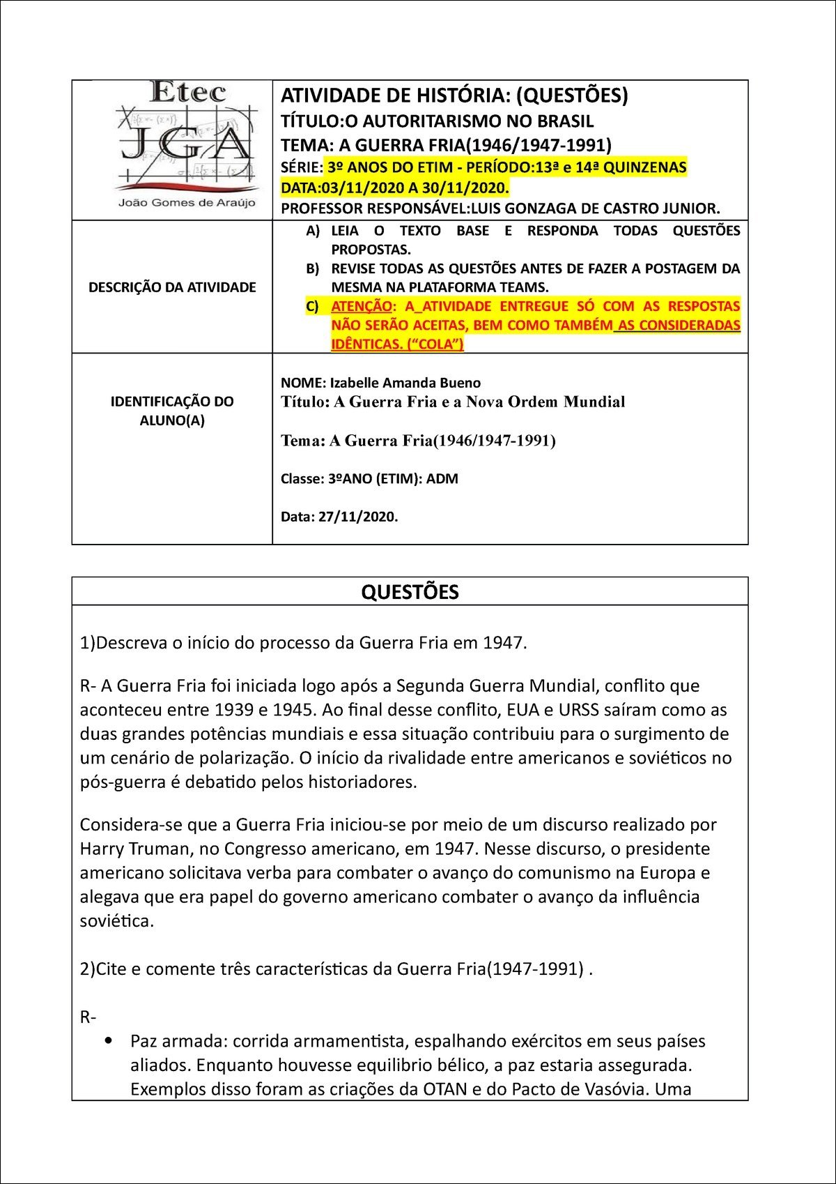 Resumo sobre ordem mundial