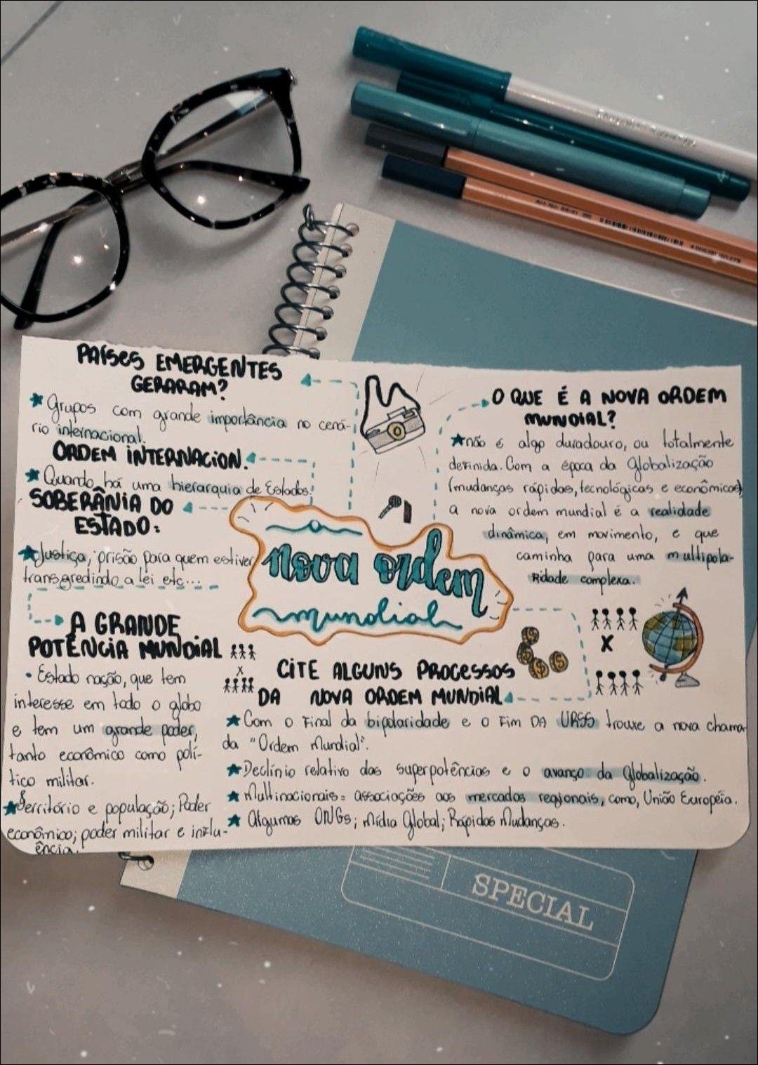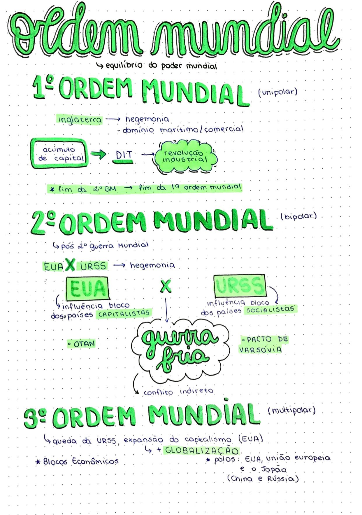 Compilação com os melhores mapas mentais, conceituais, infográficos, diagramas e resumos sobre ordem mundial.