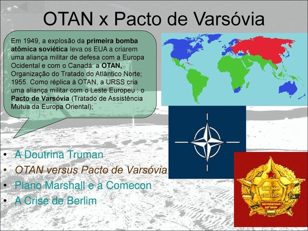 A Organização do Tratado do Atlântico Norte (OTAN) é uma aliança militar fundada em 1949, com o objetivo de defender a liberdade e a segurança de seus membros por meio de meios políticos e militares. Criada no contexto da Guerra Fria, a OTAN surgiu como uma resposta à ameaça representada pela União Soviética e seus satélites.