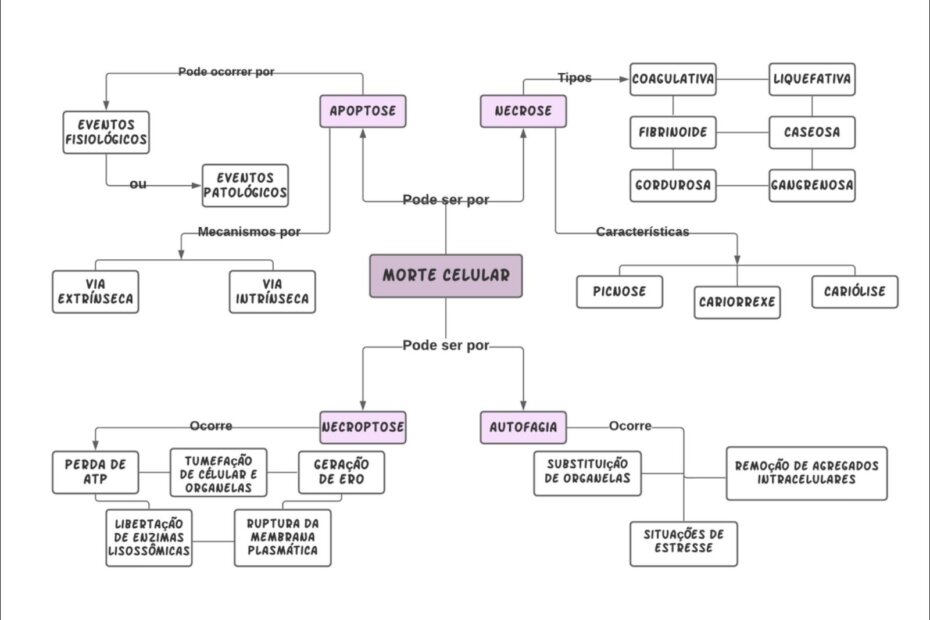 Compilação com os melhores mapas mentais, conceituais, infográficos, diagramas e resumos sobre morte celular.