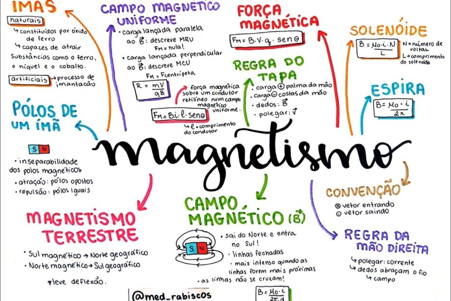 Compilação com os melhores mapas mentais, conceituais, infográficos, diagramas e resumos sobre campo magnético.