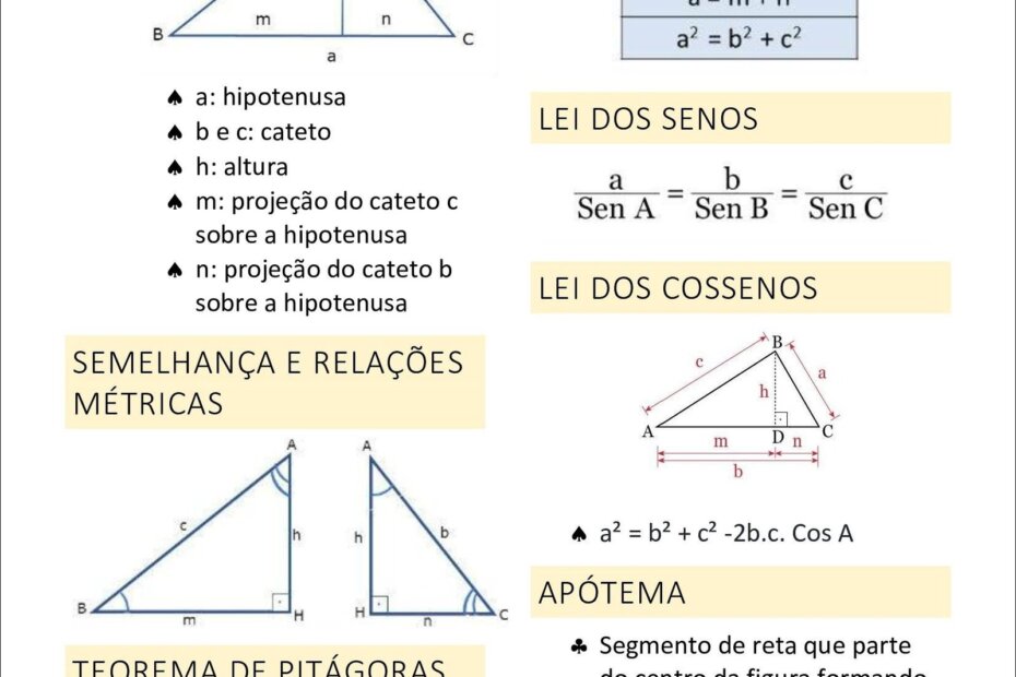 Compilação com os melhores mapas mentais, conceituais, infográficos, diagramas e resumos sobre triângulo retângulo.